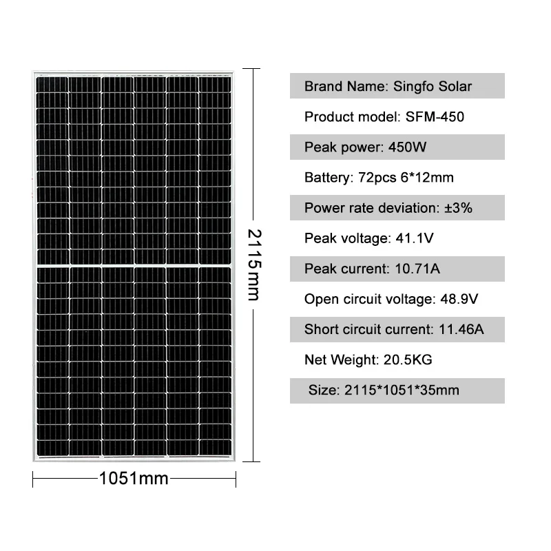 Солнечная панель 450 Вт сплит-ячейка 20% эффективность
