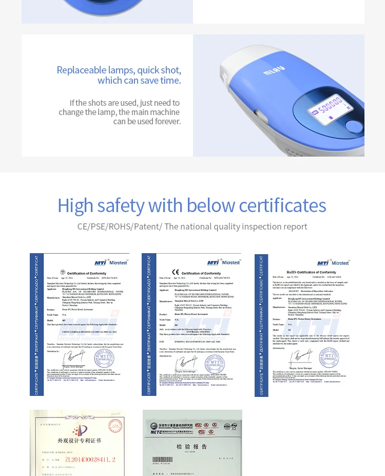 ✨Многофункциональный, лучше купить, экономичный, который используется для удаления волос, омоложения кожи, удаления акне. Одна машина используется для трех функций, низкая цена и хороший эффект, поможет вам сэкономить деньги.✨500000 снимков с кварцевой трубкой, долгий срок службы и высокая энергия.✨ЖК-экран, вы можете увидеть реальные вспышки на экране.✨Сменные лампы, быстрый снимок, который может сэкономить время. Если используются снимки, просто нужноИзмените лампу, основная машина может быть использована навсегда.✨Высокая безопасность с сертификатами нижеCE/PSE/ROHS/Patent. Национальный отчет по проверке качества1. Лампа2. Индикатор состояния3. Кнопка съемки4. ЖК-экран5. Кнопка выбора мощности/энергии6. Вход постоянного тока