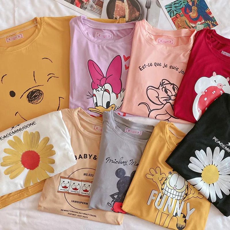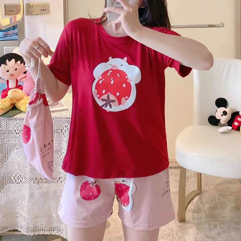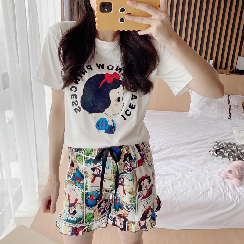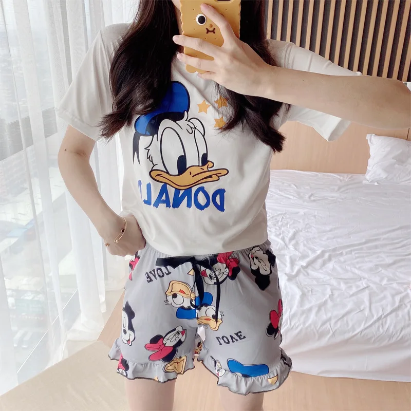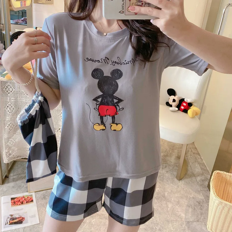 Пижама женская шелковая с коротким рукавом и принтом Микки Мауса