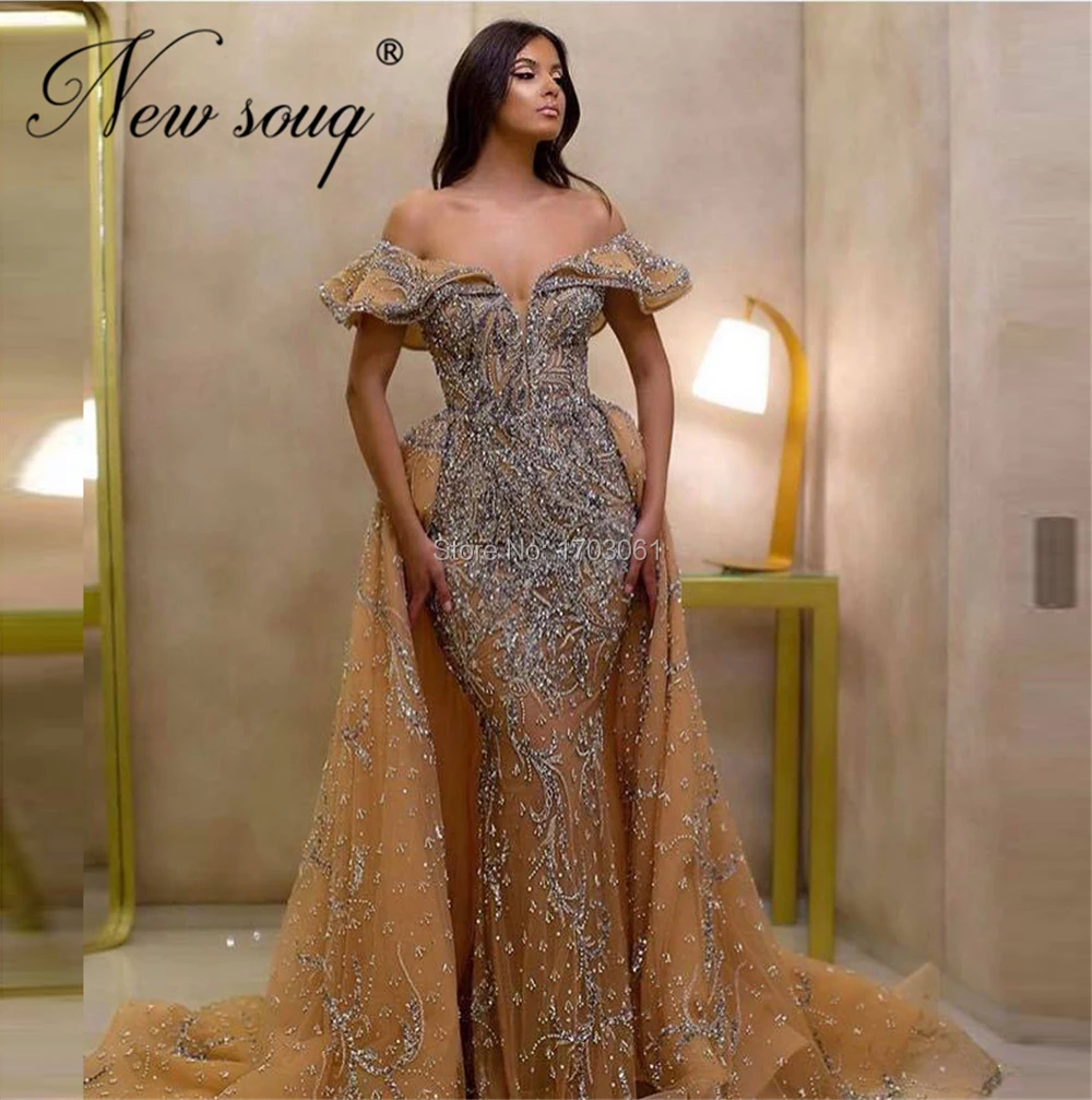 Великолепные вечерние платья со стразами со съемным шлейфом Средний Восток с открытыми плечами женские платья с бисером
