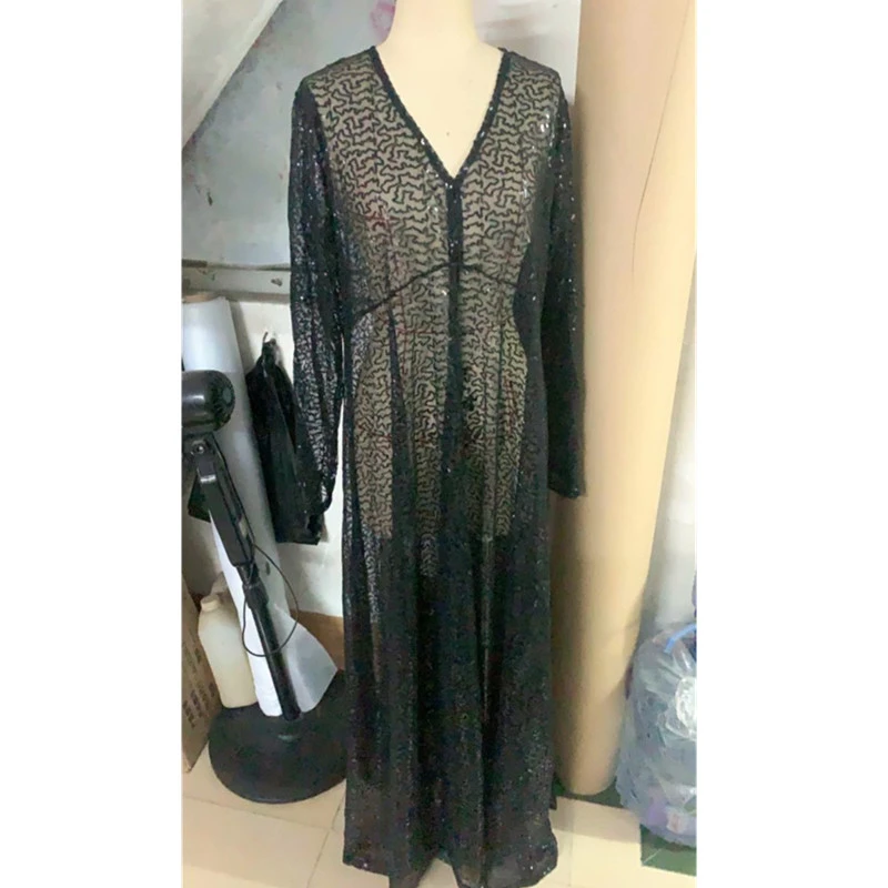 Женское Сетчатое платье макси, Прозрачное платье с длинным рукавом и высокой талией, осень размера плюс