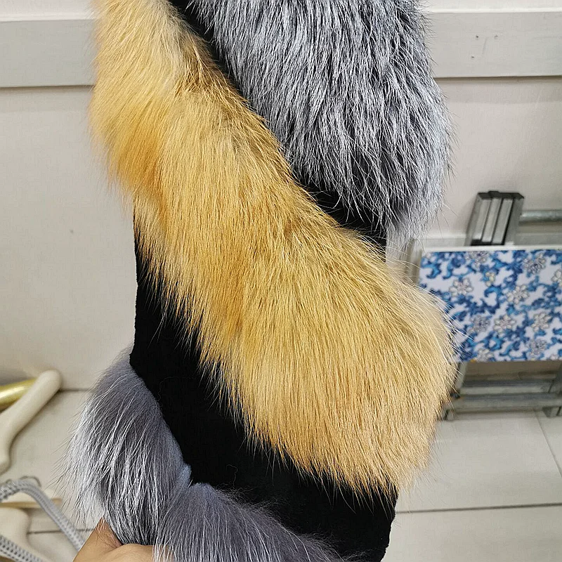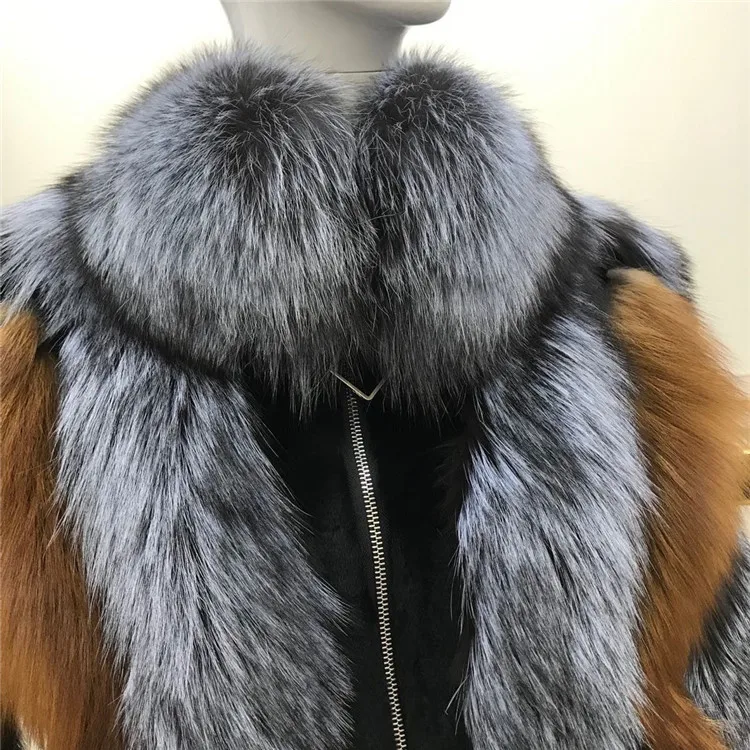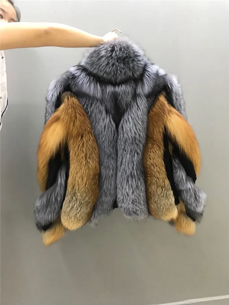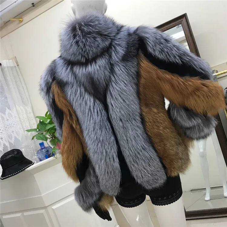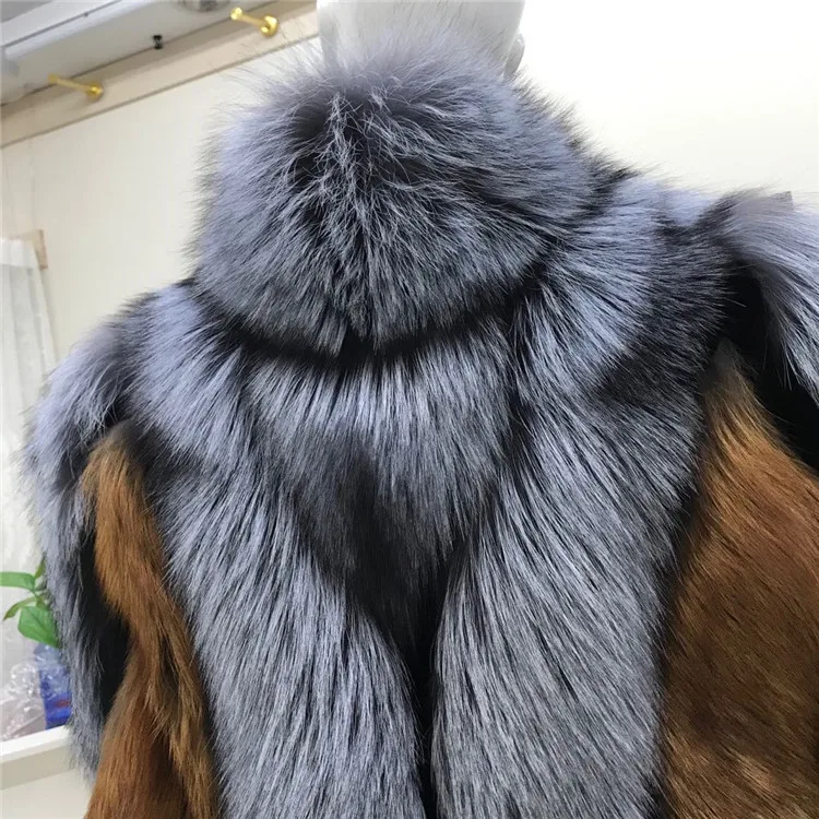 Женское меховое пальто в стиле пэчворк, верхняя одежда контрастных цветов из натурального Лисьего меха, зима 2021