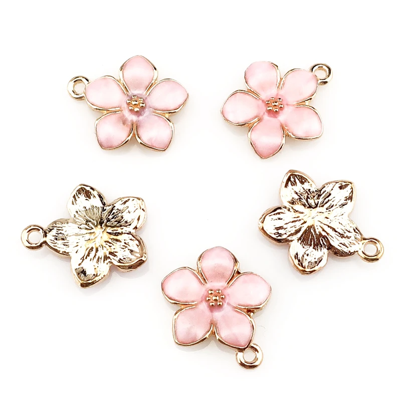Эмалевые Подвески в виде цветка вишни, 20 шт.лот, милая подвеска в виде сакуры, камелии для женщин, ожерелья, серьги, изготовление ювелирных изделий оптом