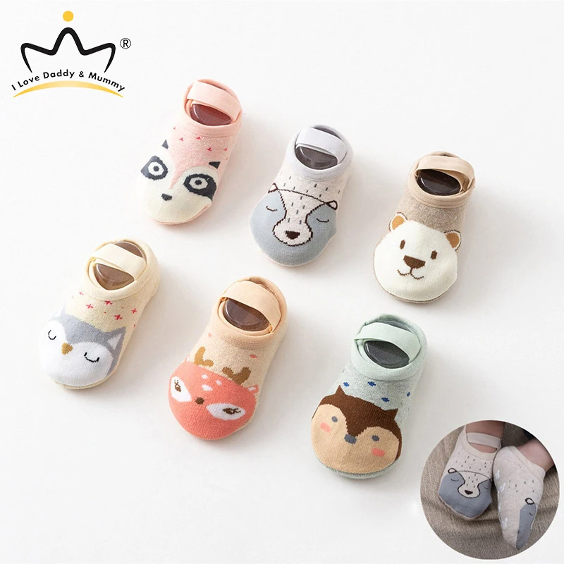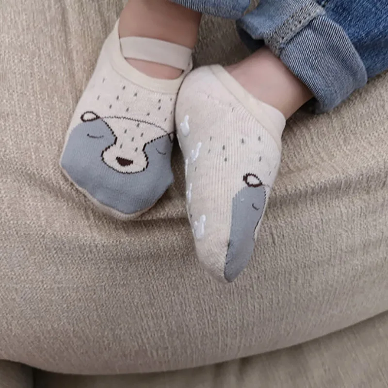 Носки детские хлопковые нескользящие, с изображением лисы, медведя, животных