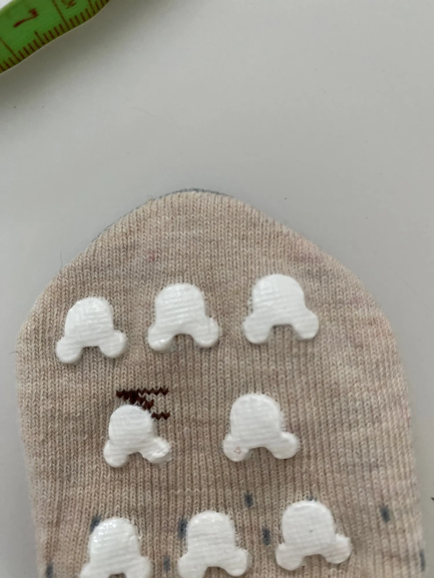 На одном носочке резиновые элементы на подошве были склеенв, и на обоих свержу зацепки, в принципе не критично, но вид портит