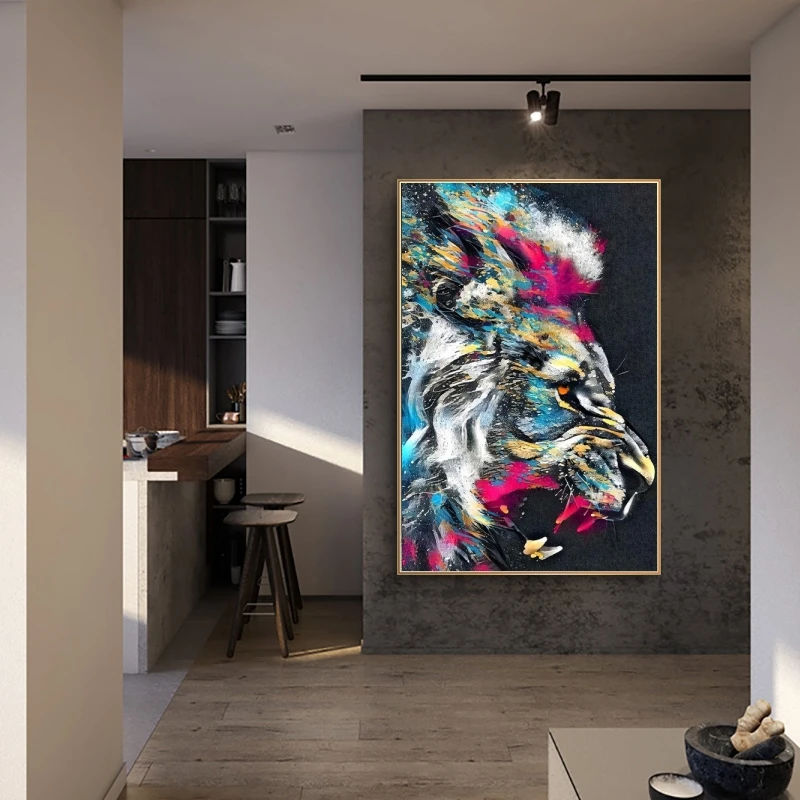 Картина с изображением Льва, граффити, настенные картины, художеств...