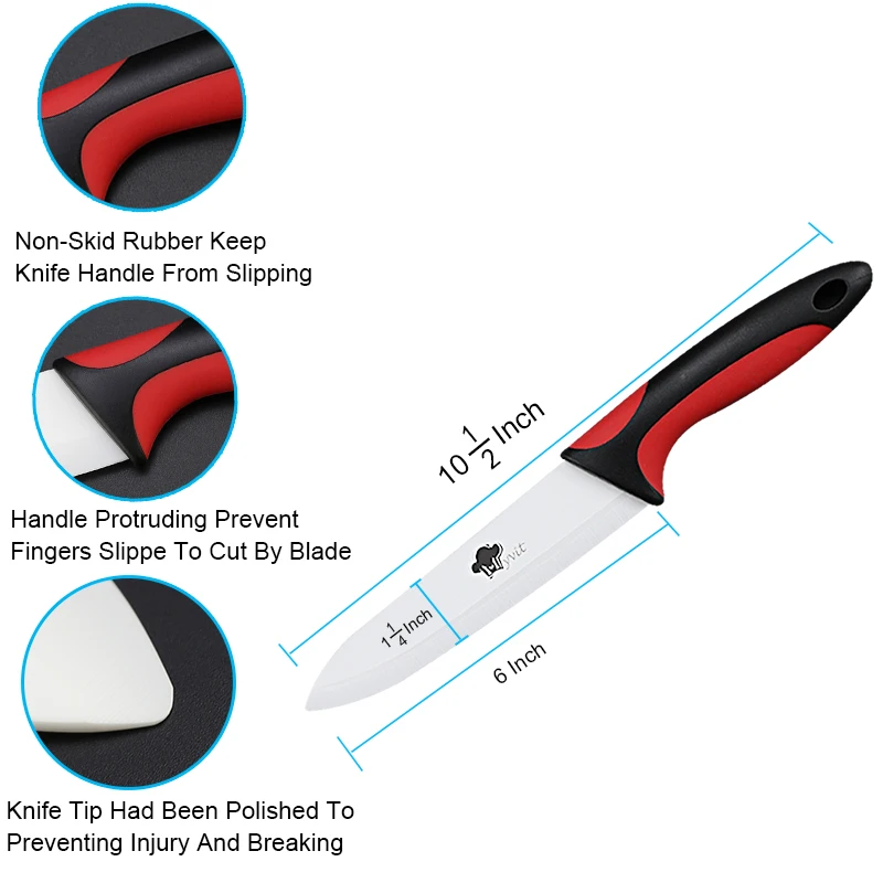 Нож Керамический, 6543 дюйма, с цветной противоскользящей ручкой