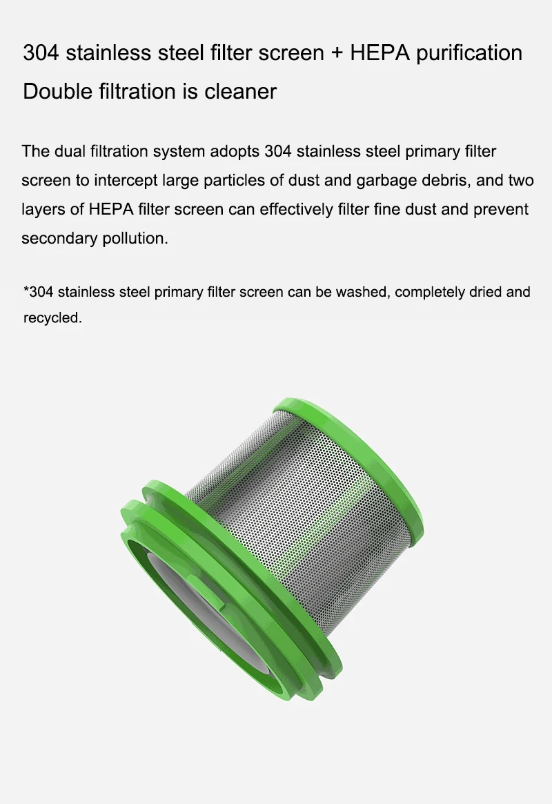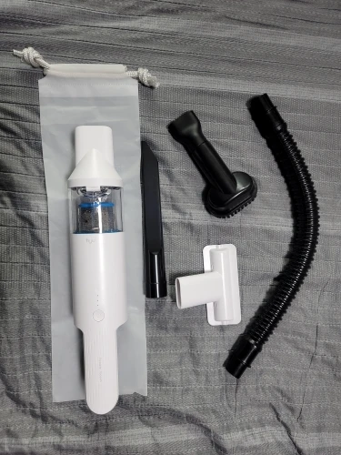 Пылесос стильный и компактный. На первый взгляд изделие производит приятное впечатление. В руках ощущается не слишком тяжёлым. Привычного, сменного HEPA-фильтра нет. В основном комплекте к пылесосу прилагается: полиэтиленовый чехол, кабель для зарядки и одна насадка для мягкой мебели. Прочие насадки пришли в одной посылке, но как будто в комплекте они не идут (лежали отдельно от коробки с основными принадлежностями) Доставка до Казани 22 дня (приемлемая скорость) Трек отслеживается. Цена с доставкой (на 05.2021) 4697р