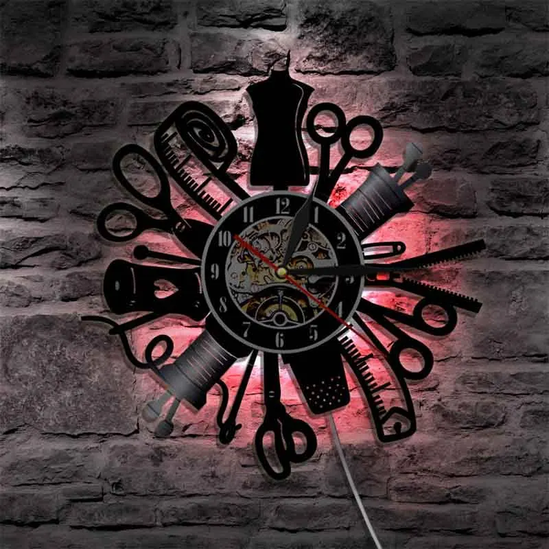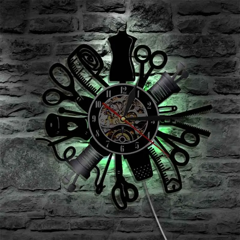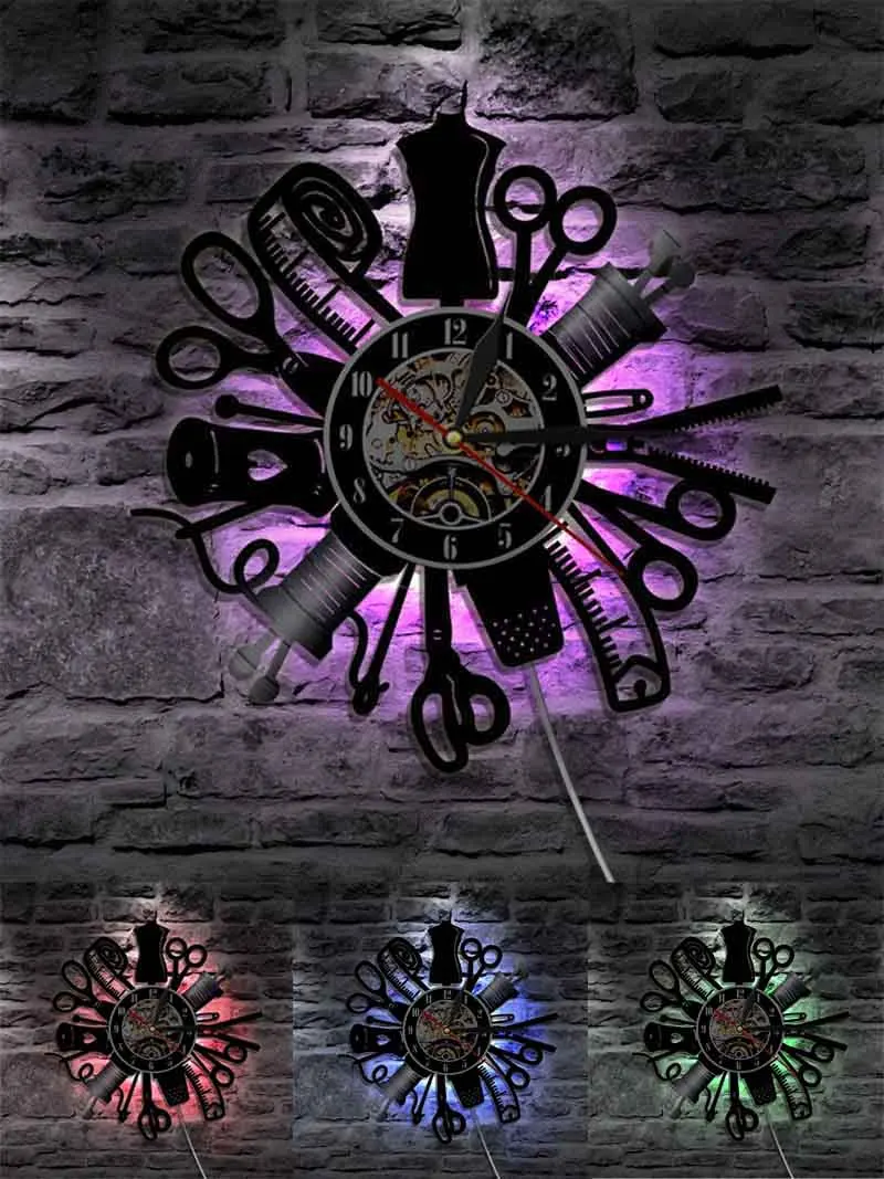 Настенные часы с виниловой пластинкой, светящиеся, современный дизайн, шитье, ремесло, виниловые часы с 7 светодиодный дами, меняющие цвета, настенные часы