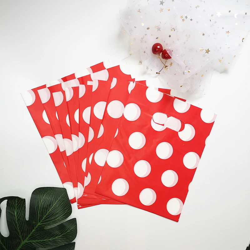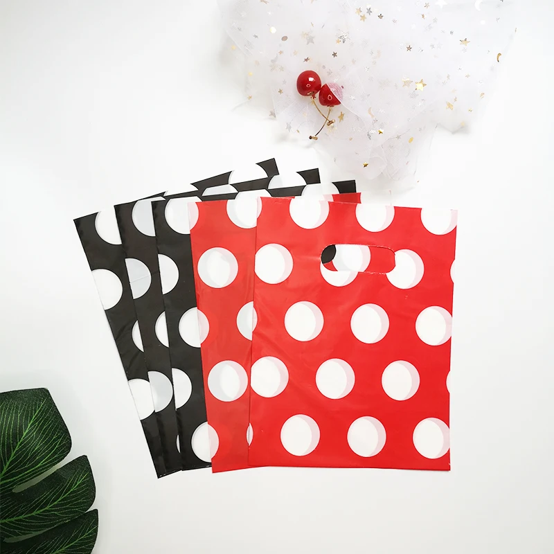 Пластиковые подарочные пакеты в черный и красный горошек, 15 х20 см, 100 шт., сумки для магазина, сумки для покупок, подарочные пакеты с ручками, маленькие сувенирные пакеты вечерние Ринок