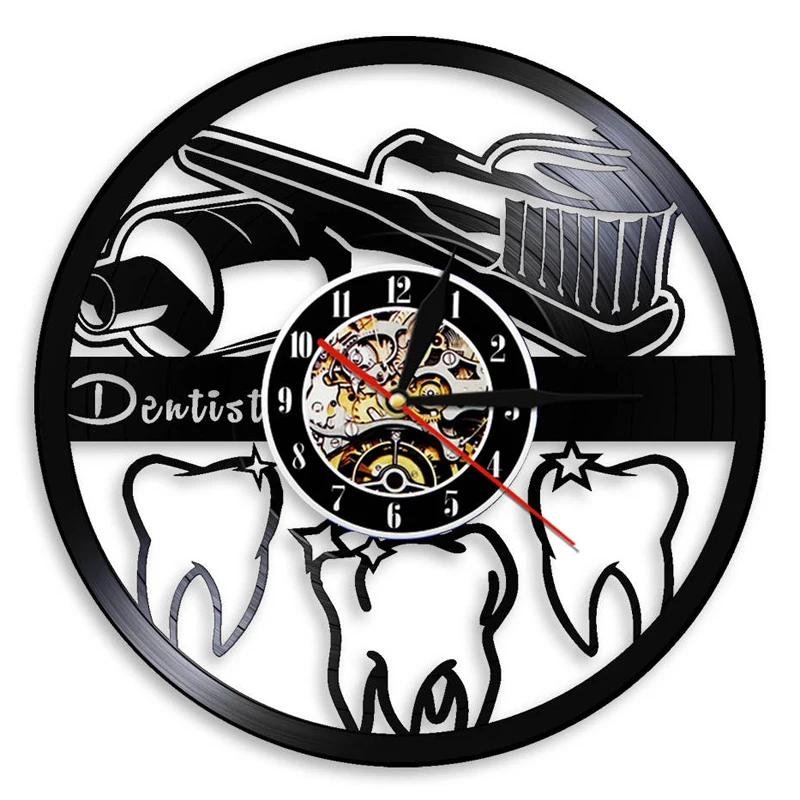 Настенные часы с виниловой пластинкой, зубы, современный дизайн, настенный знак, 3D декоративные виниловые часы, настенные часы, подарки для стоматолога