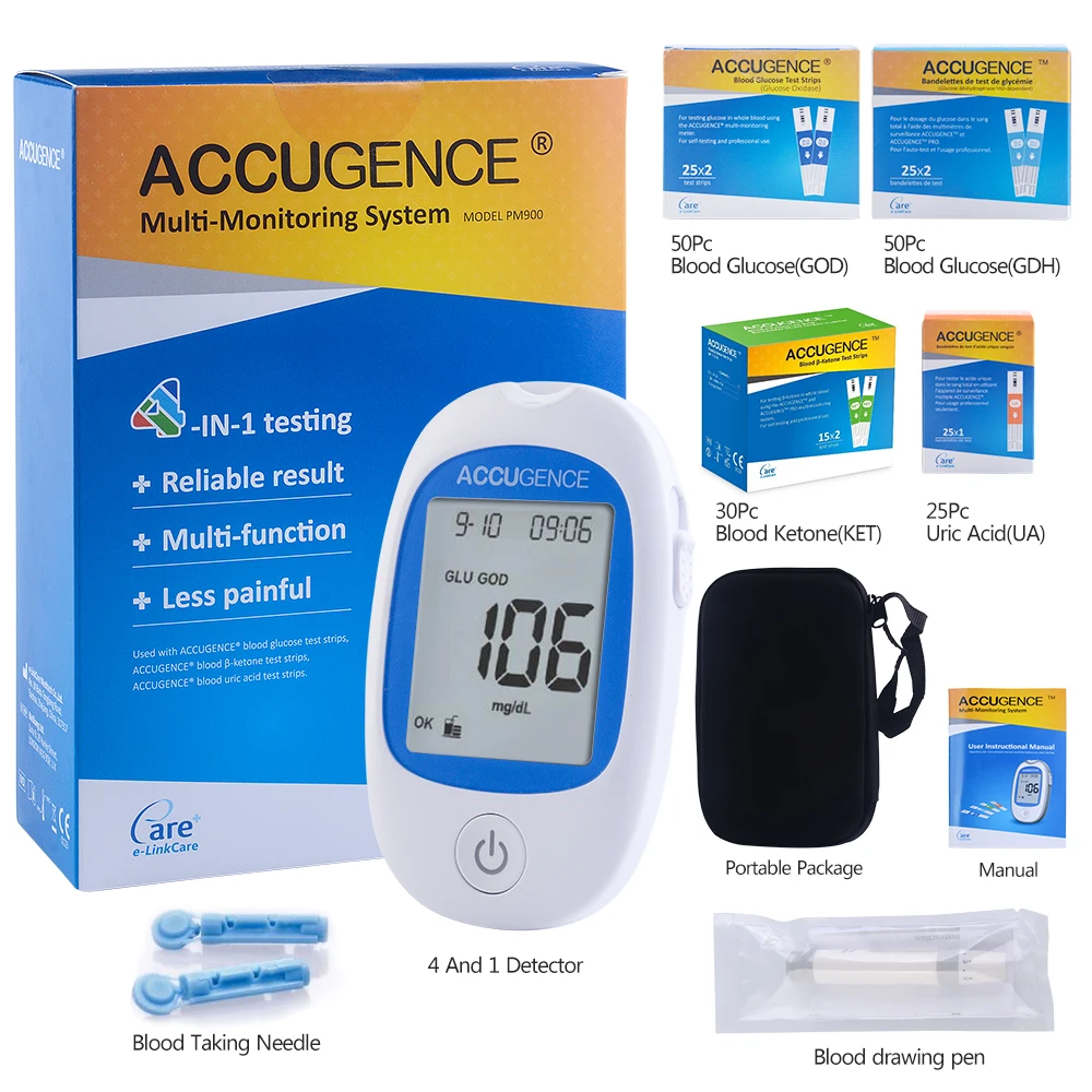 Измеритель уровня глюкозы в крови, кетона, мочевой кислоты, 4 в 1