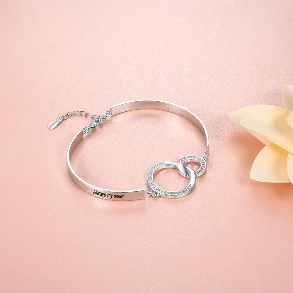 Браслет с узлом из круга, персонализированное выгравированное название, индивидуальный, браслет для сестры