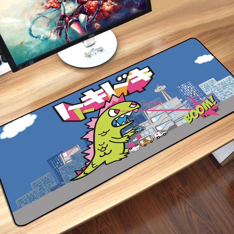 Коврик для мыши игровой в стиле аниме 900x400 мм, большой милый динозавр из натурального каучука, коврик для компьютерной мыши с обработанным краем, коврик для рабочего стола для ноутбука