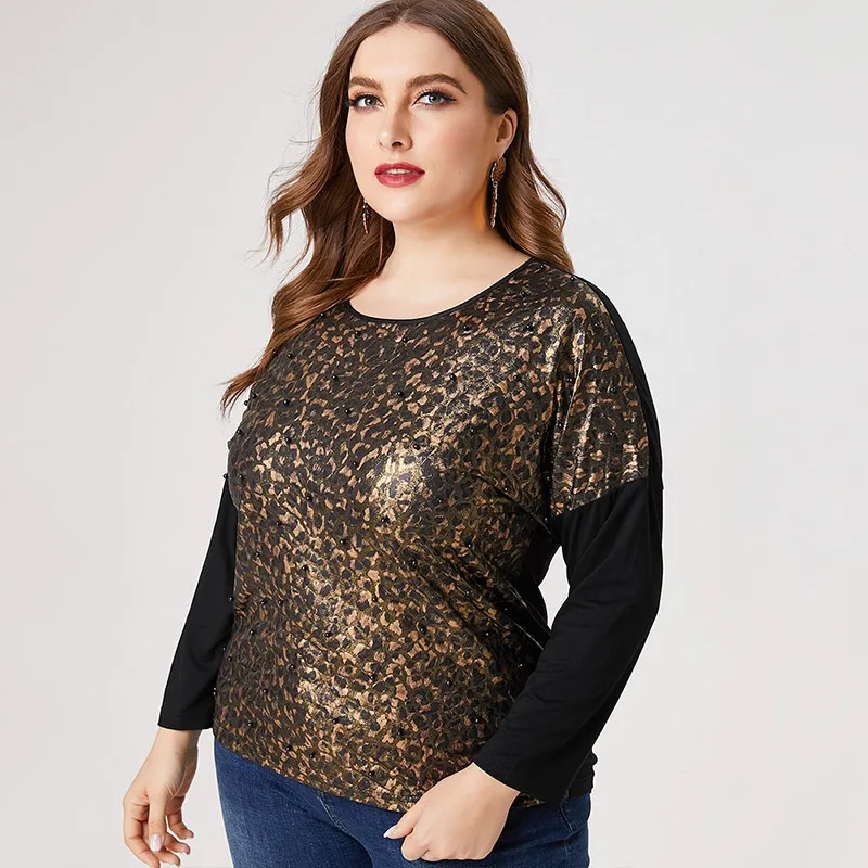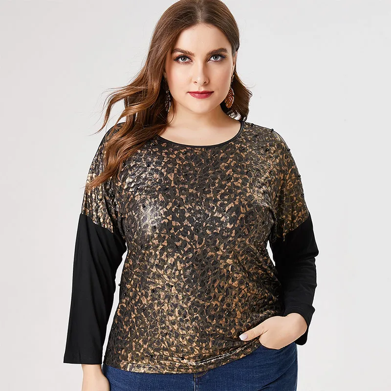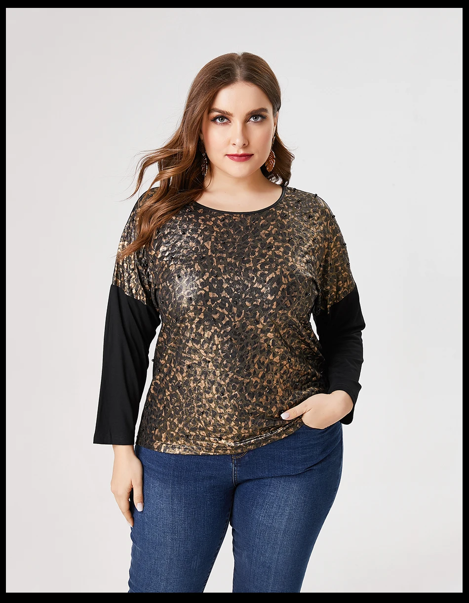 Осень 2021, женская футболка с леопардовым принтом и длинным рукавом, модная женская винтажная элегантная одежда для мам, женские Пригородные Топы больших размеров
