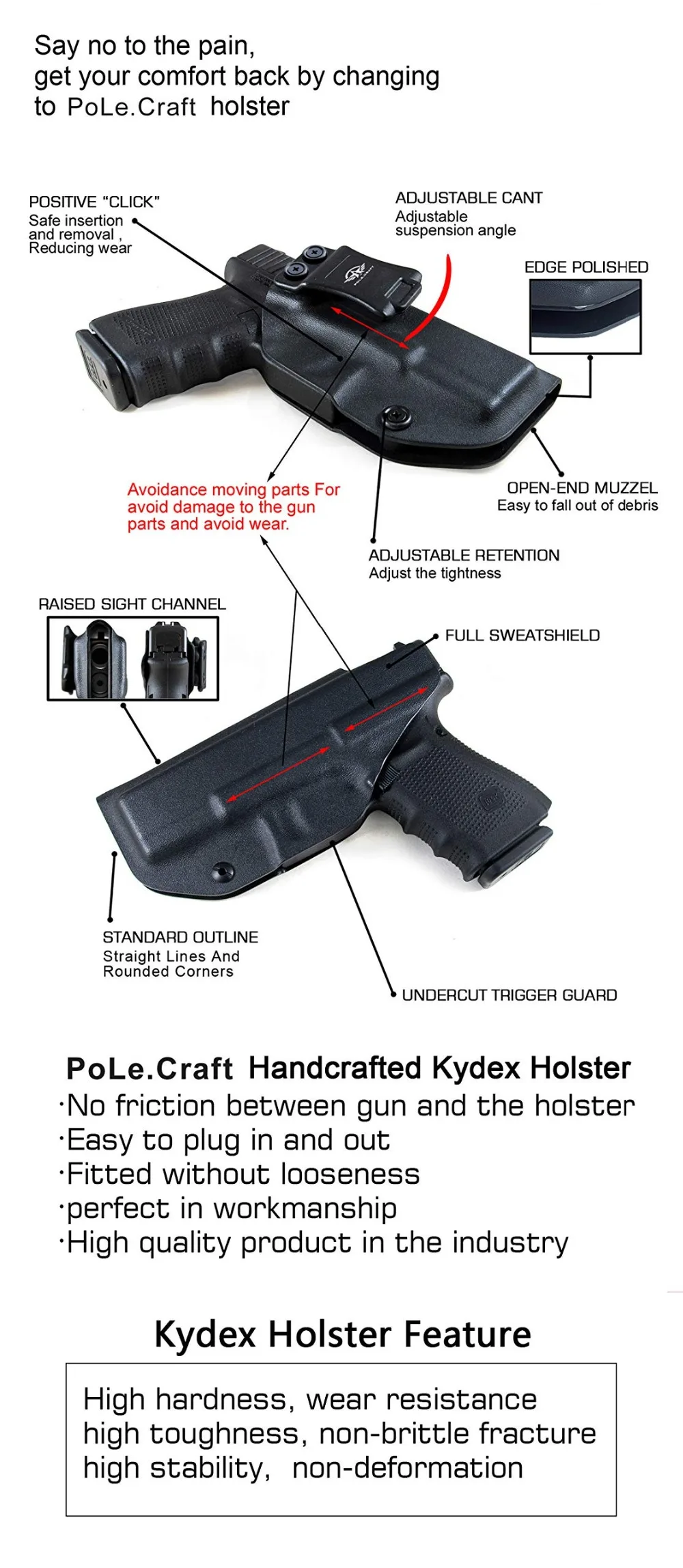 Пожизненная гарантия: мы уверенно предлагаем пожизненную гарантию, которая дает вам спокойствие при выборе PoLe.Craft IWB KYDEX Holster. Если наши продукты не работают, как обещано, пожалуйста, верните замену или полный возврат средств.