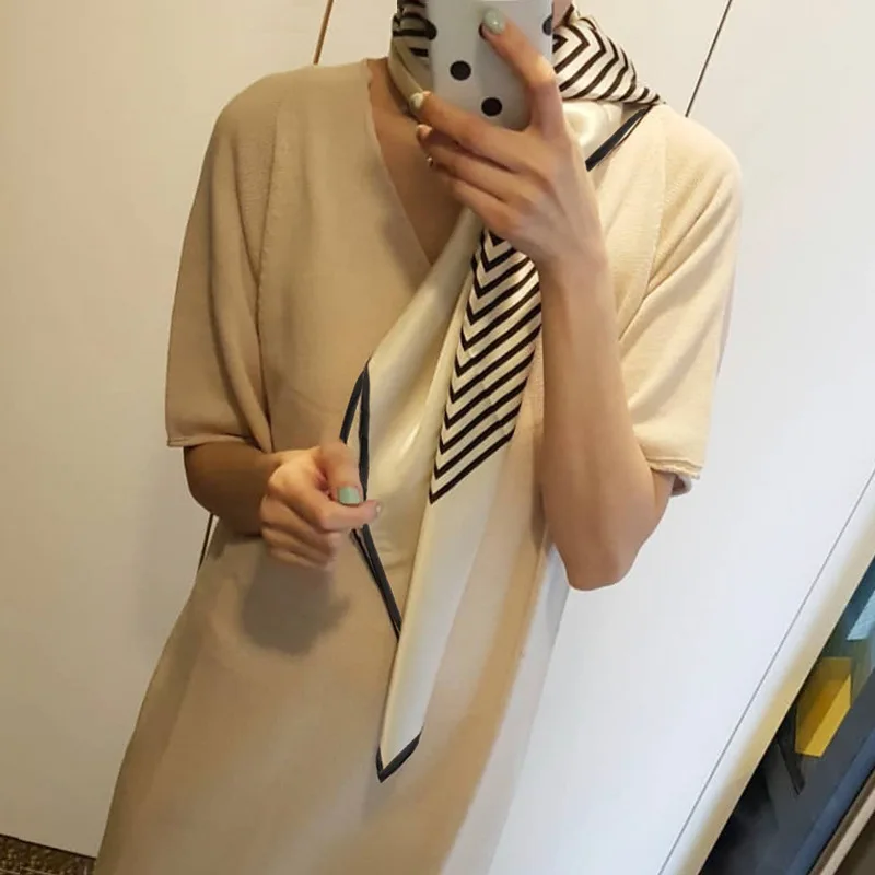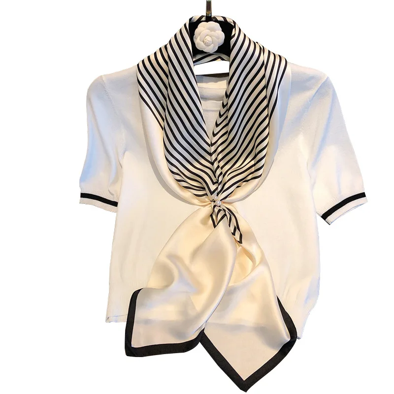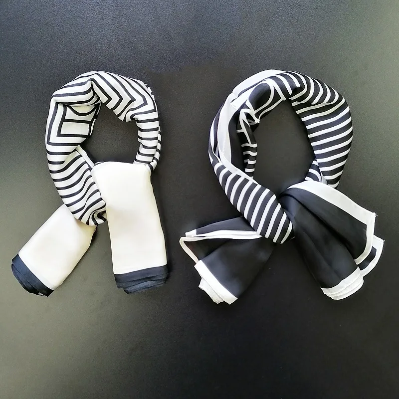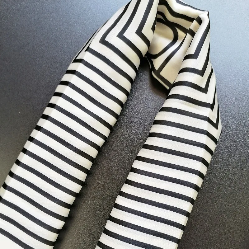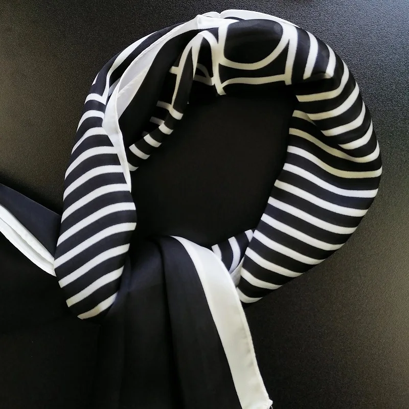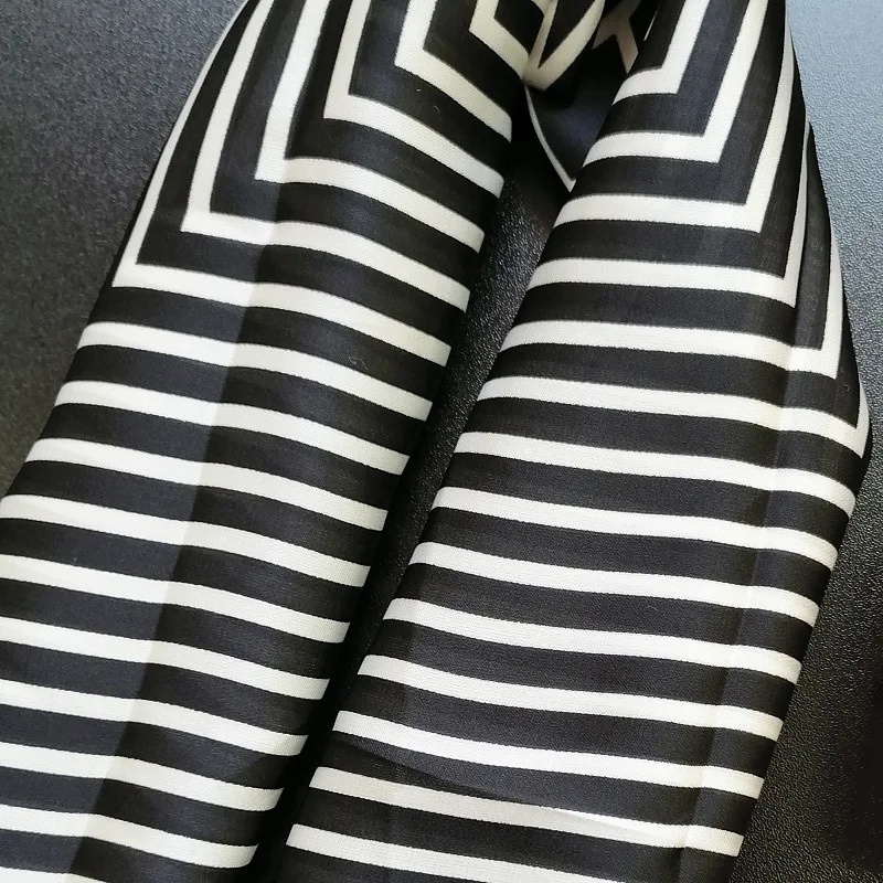 Платок женский Шелковый в белую и черную полоску, 90 см