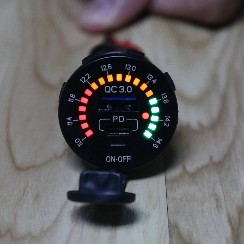 Автомобильное зарядное устройство Waterprof, 12 В, быстрая зарядка QC 3,0 USB Pd для Iphone, type-c, 18 Вт, со светодиодным вольтметром, переключателем для лодки