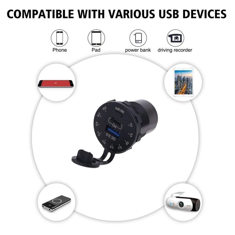 Многоцелевые: питание для мобильных телефонов, планшетных ПК, GPS и других usb-устройств, широкое применение: автомобили, мотоциклы, квадроциклы, внедорожники, UTVs, лодки и т. Д.
