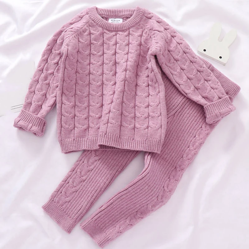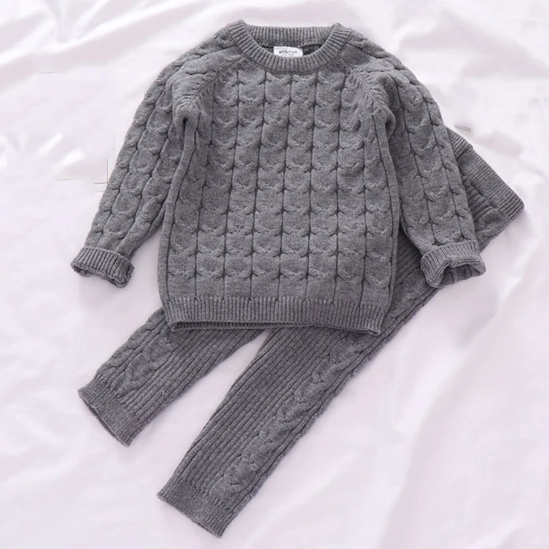 Комплект одежды для мальчиков и девочек, зимний трикотажный свитер и штаны, 2 шт.