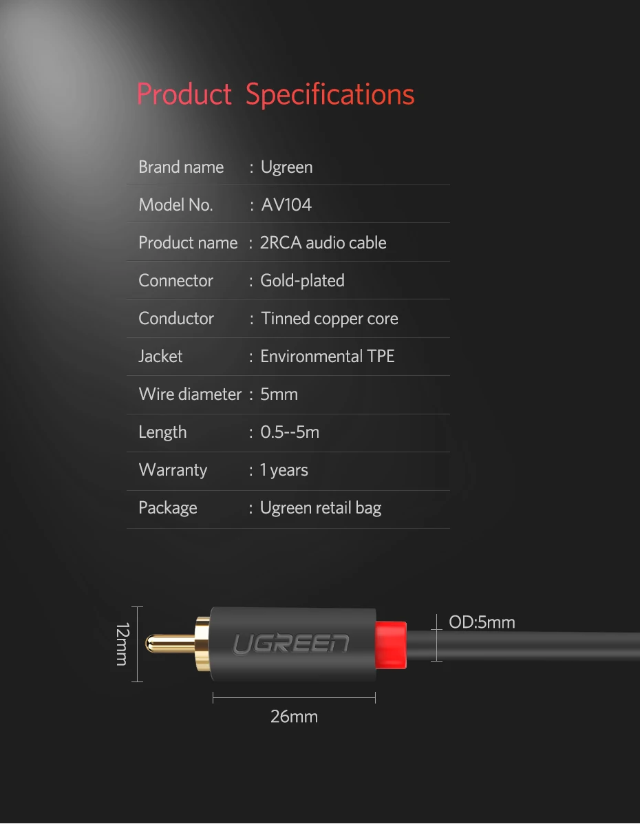 Стереокабель UGREEN, RCA стерео кабель 2RCA папа-2RCA папа, аудиокабель для домашнего кинотеатра, усилители HDTV, Hi-Fi систем