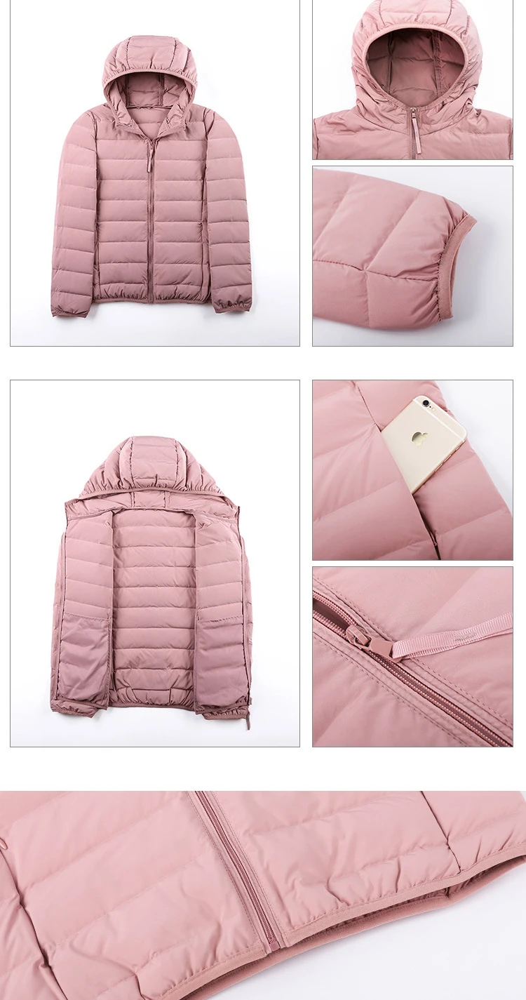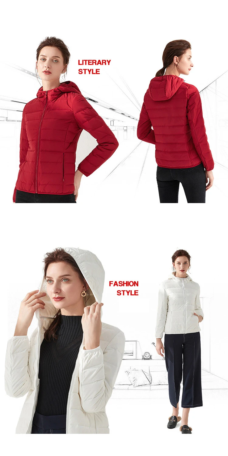 Женская теплая куртка на белом утином пуху, с капюшоном