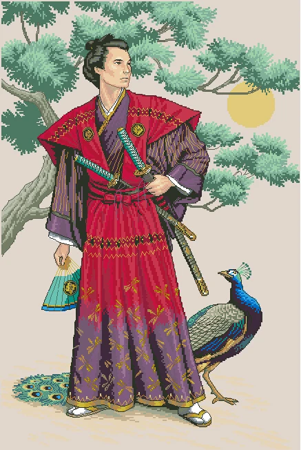 Набор для вышивания крестиком 142225 карат, могучий Самурай, Азиатский, японский человек и Павлин, птица, Дим 03881