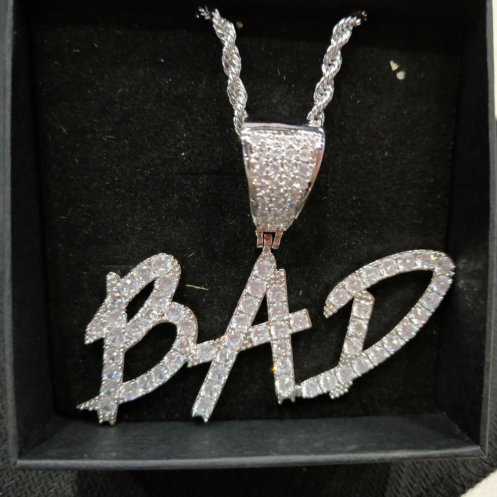Цепочка с кулоном DOREMI в стиле хип-хоп, ювелирное изделие с кулоном с буквами инициала и надписью, полное лезвие из кубического циркония
