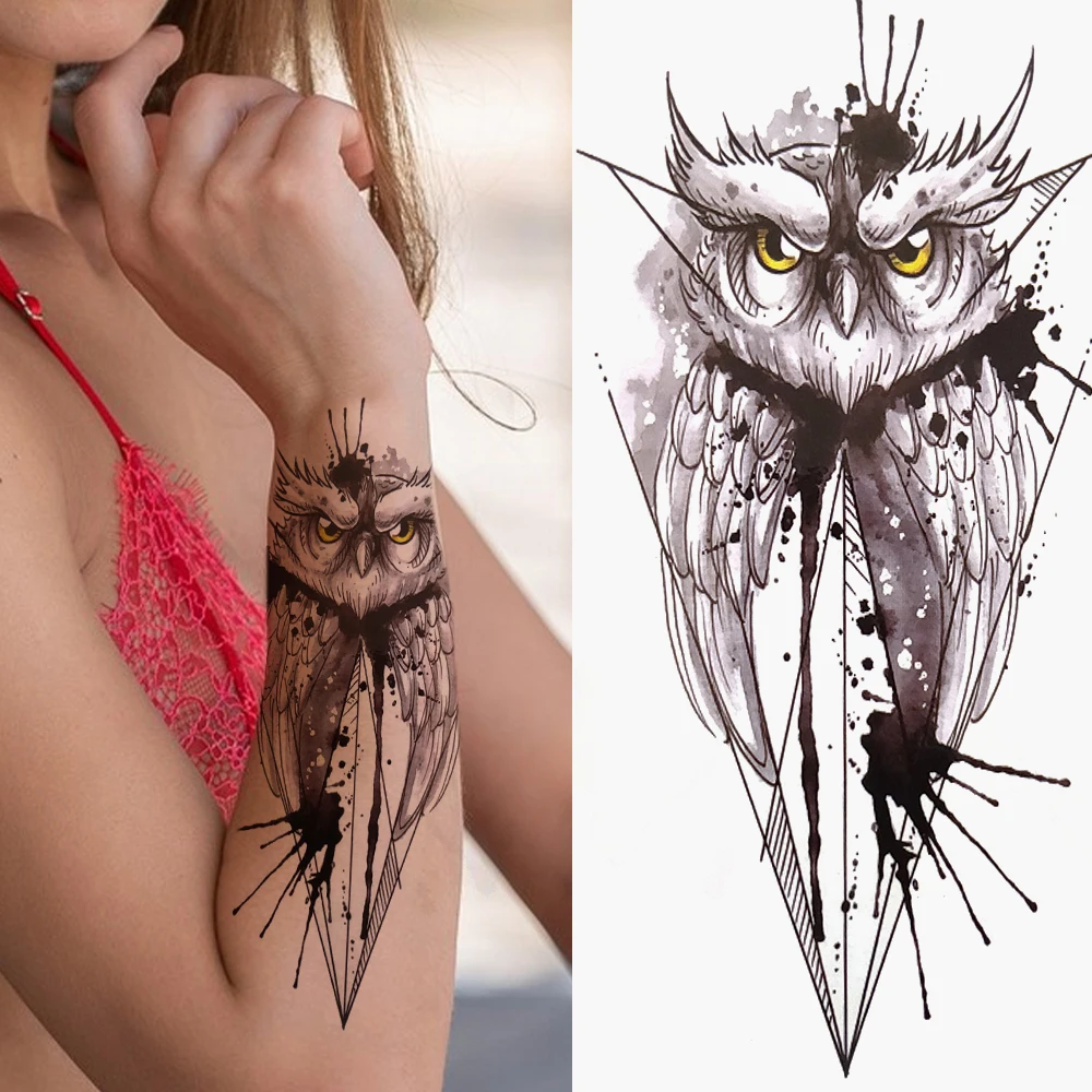 Геометрическая временная татуировка совы для женщин, искусственный волк, тигр, олень, треугольные татуировки, наклейки, черная луна, цветок, боди-арт, татуировки