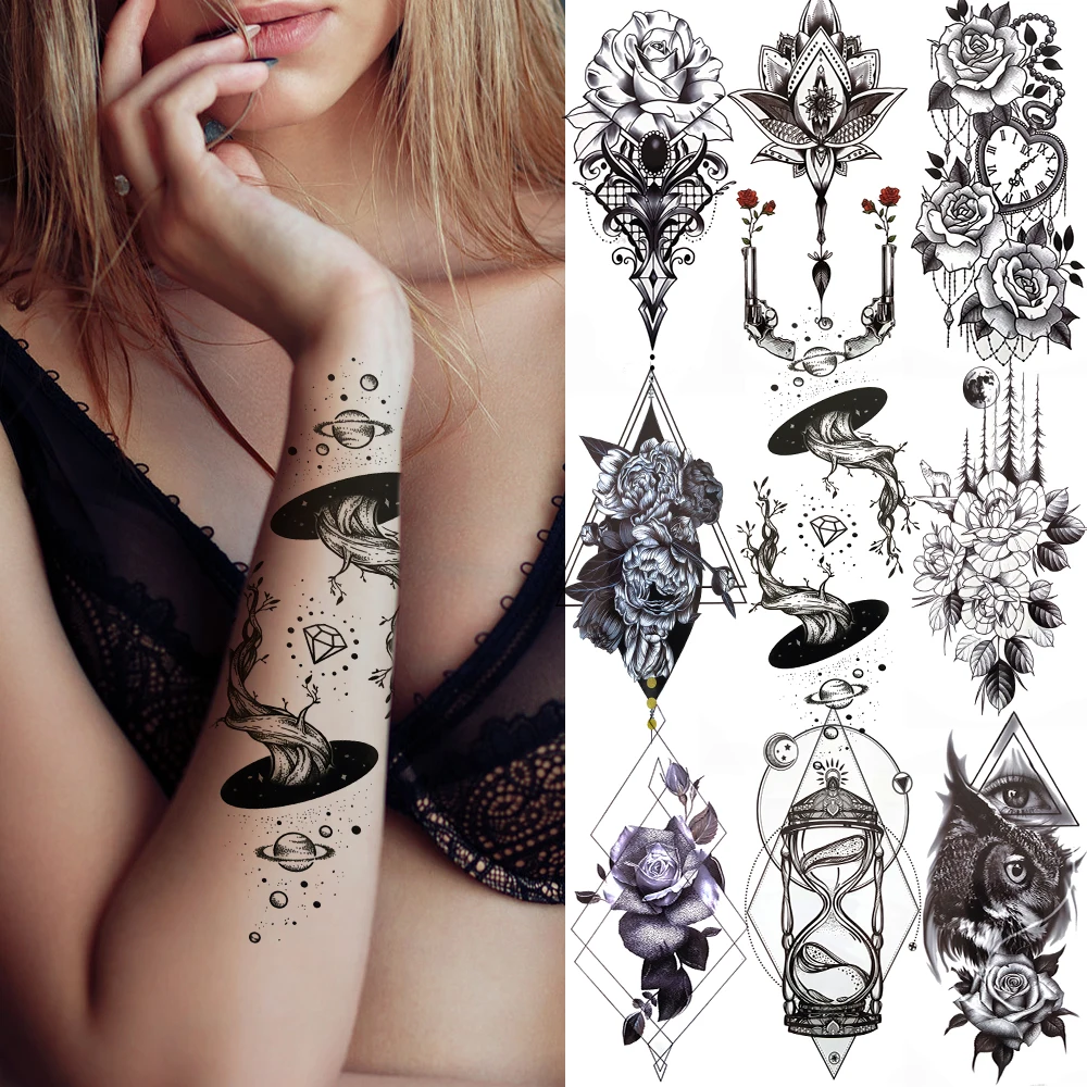 Алмазное дерево планеты временная татуировка для женщин черный Будда лес песочные часы тату стикер поддельные демон глаз треугольник тату паста