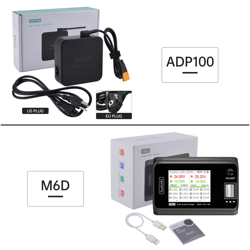 ToolkitRC M6D мини умное зарядное устройство DC Двухканальное 250Wx2 15A выход 2-6s балансирующее зарядное устройство с адаптером 100 Вт для радиоуправляемых аккумуляторов