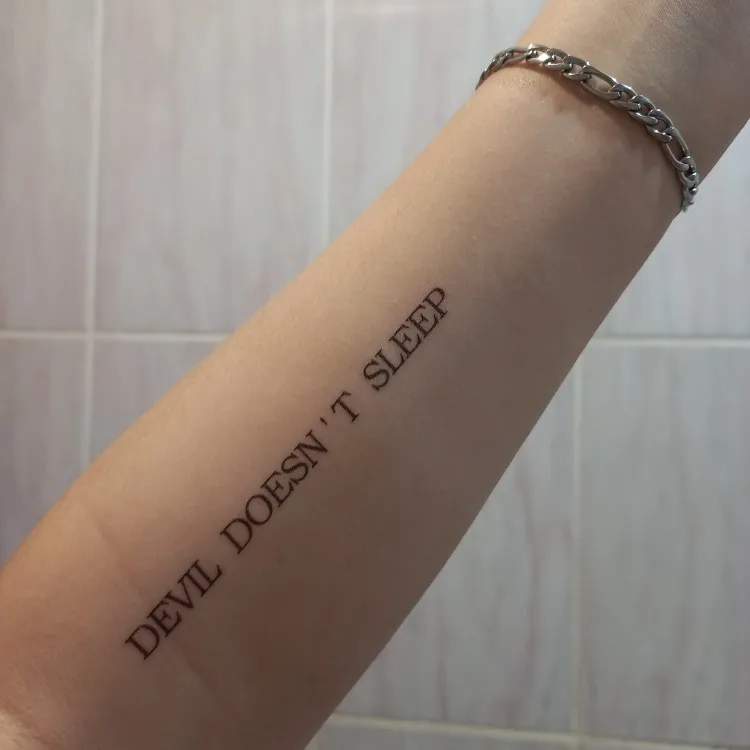 Водостойкая Временная тату-наклейка на шею, черные слова, ангел, дьявол, бык, крест, английские буквы флэш-тату, искусственная тату для женщин и мужчин
