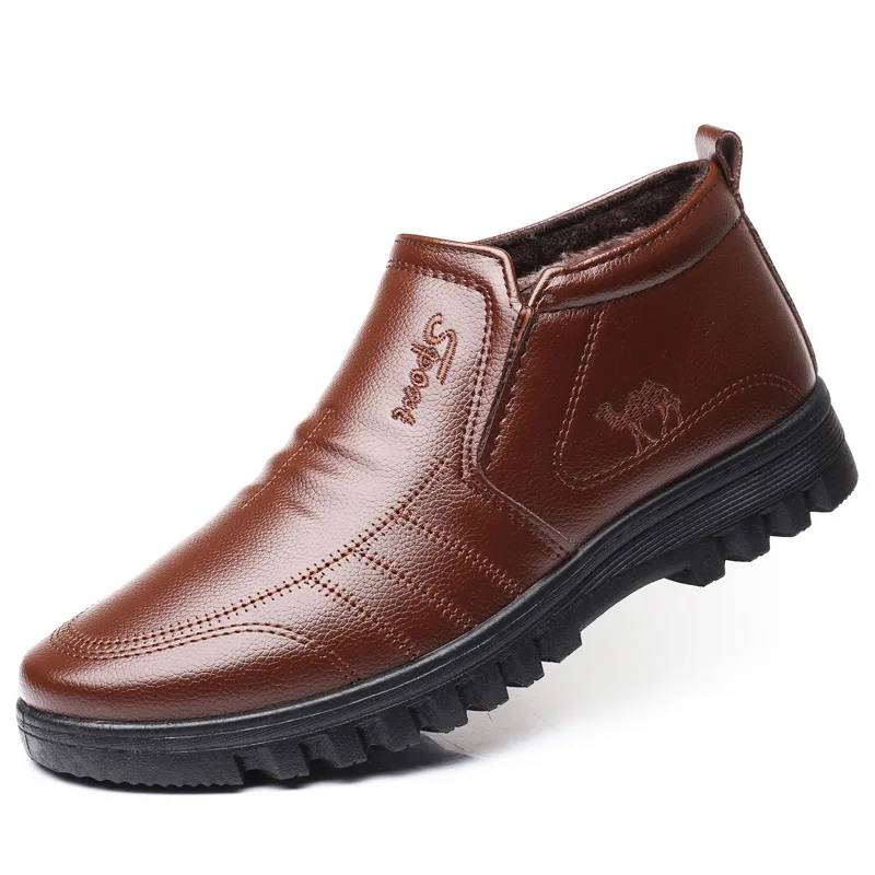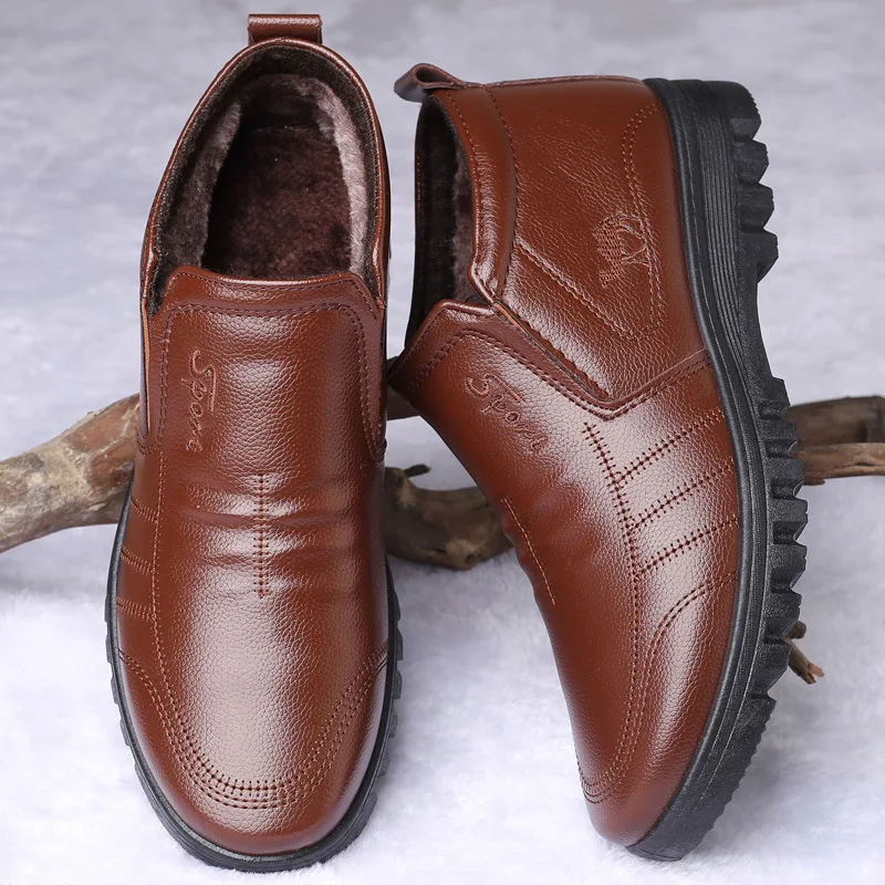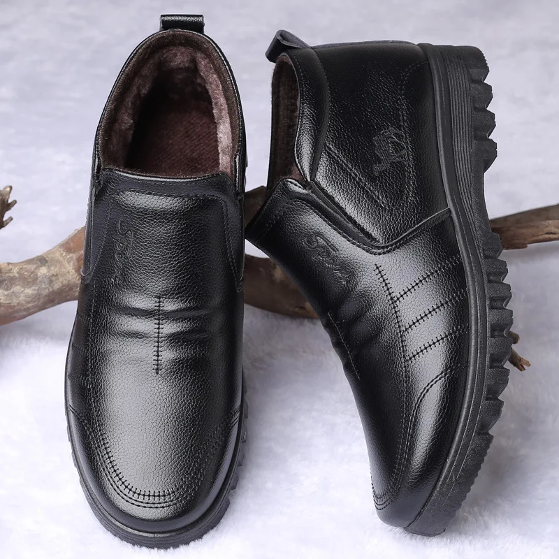 Мужские кожаные ботинки, теплые ботинки на плотной подошве, для зимнего сезона