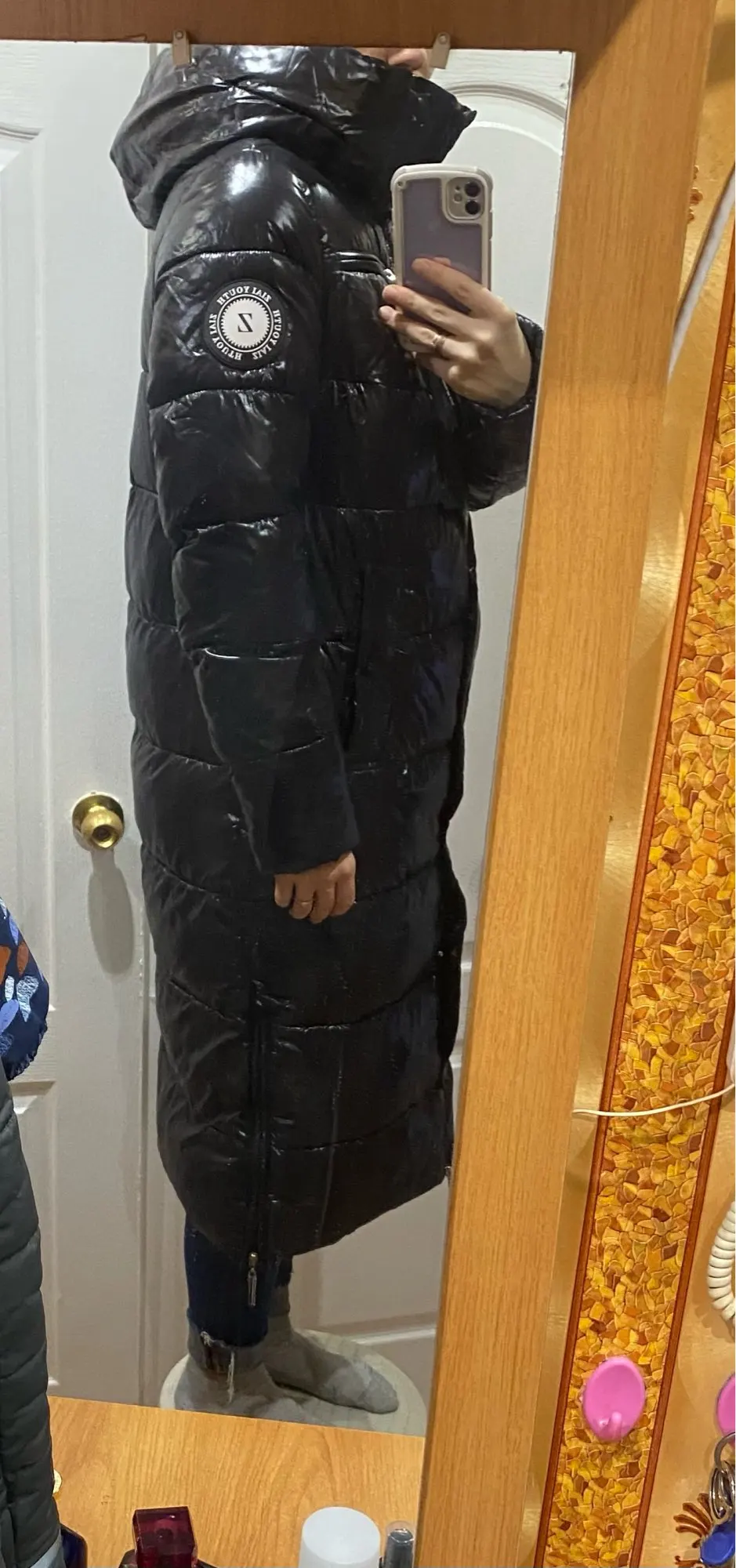 Классный пуховик, добротно сделан, стильно смотрится, просто супер! Мягкий, воздушный, лёгкий, тёплый, удобный. Хотела в другом цвете, но достался в чёрном и ему очень рада, ловко выглядит. Качество хорошее, ни одной ниточки не торчит, все очень аккуратно сшито. На мои объемы ОГ 102/ ОТ 81 / ОБ 112/ рост 176 сильно перестраховалась и заказала 3XL, хотя продавец советовал XL. И да, можно было брать меньше, но я люблю посвободнее поэтому думаю для меня 2XL был бы в самый раз, но не меньше. Так как 3XL хорошо распушился и мне по плечам и в длине рукава сел отлично, а в талии конечно широковат, но буду носить как оверсайз с удовольствием. Продавец хороший, помогает и быстро отвечает, ещё вместе с курткой прислал подарок сумочку и купон на 3$, что очень приятно. Упаковка в вакуумный пакет. Доставка молния, 10 дней до МО. Я очень рада. Магазин в любимые ❤️Спасибо!!