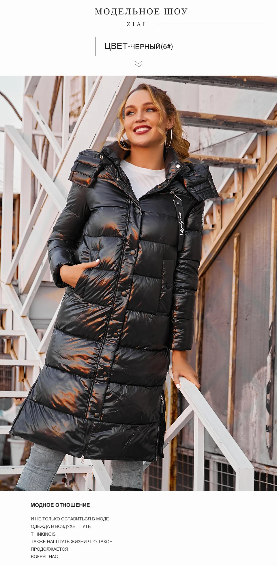 Куртка женская ZIAI, зимняя, теплая, яркая, приталенная, 2020, ZR-9510