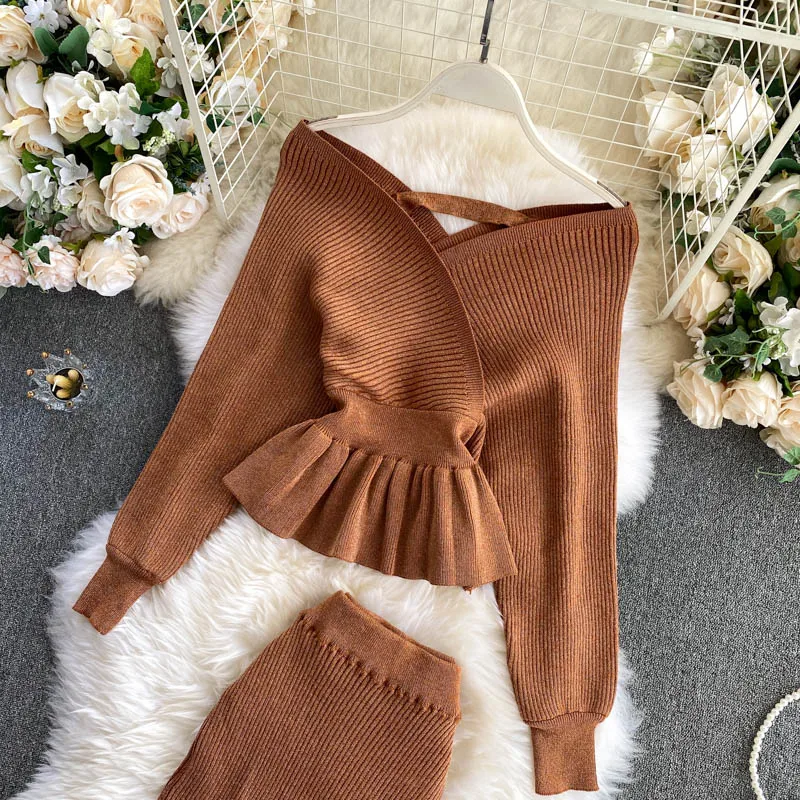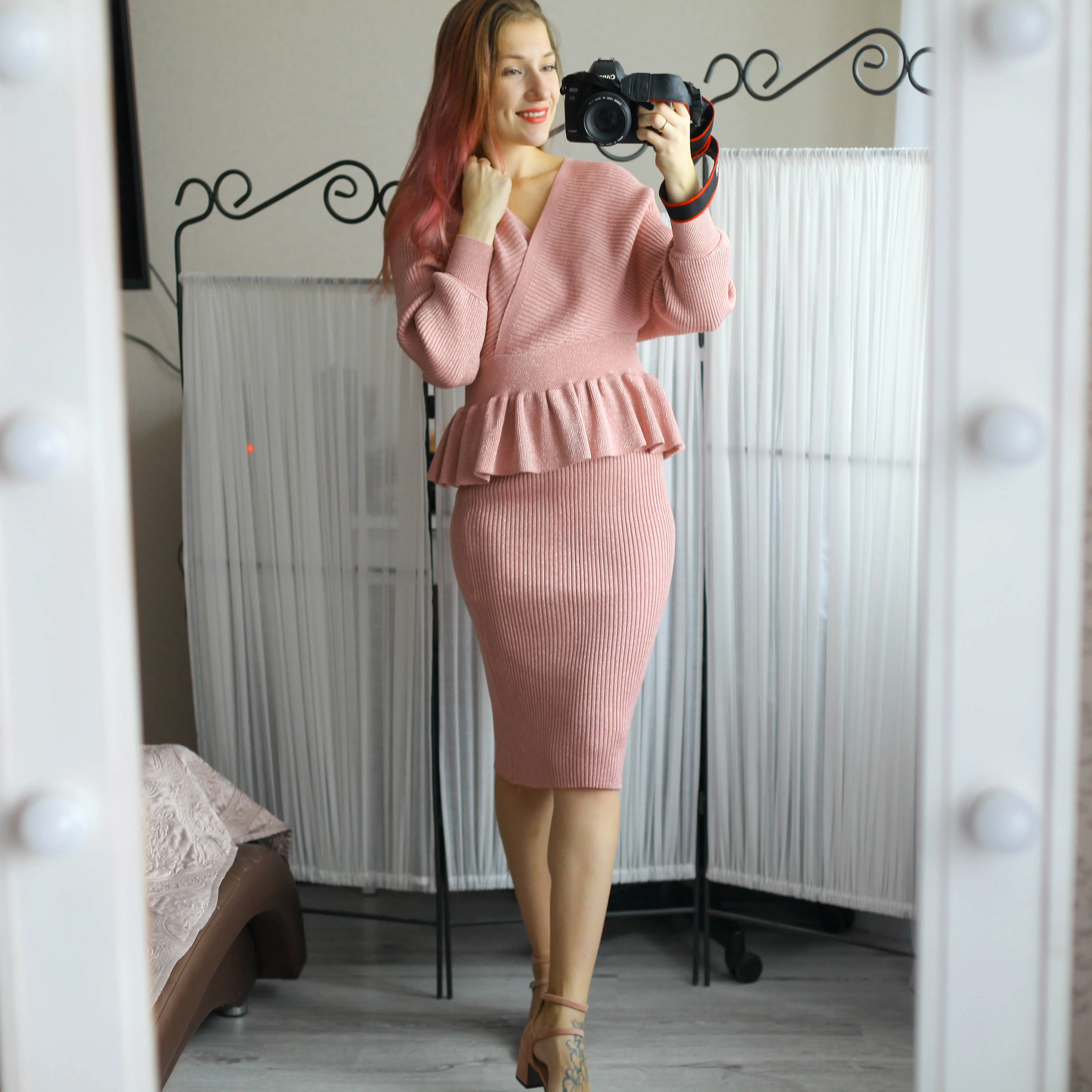 WeChat - Vika7557 Теплые вязаные костюмы с юбкой - один из популярных элементов модных подиумов, чья актуальность уже многие годы остается на пике.✨✨✨ Подобные наряды лаконично сочетают в себе комфорт, элегантность и практичность. Самые разнообразные варианты сочетания вязаных вещей позволяют им оставаться в тренде практически во все сезоны. Качество очень хорошее. На счёт размера one size на параметры талия - 62, бедра - 91, рост 173, вес 51 кг мне как раз подошло, ткань хорошо тянется