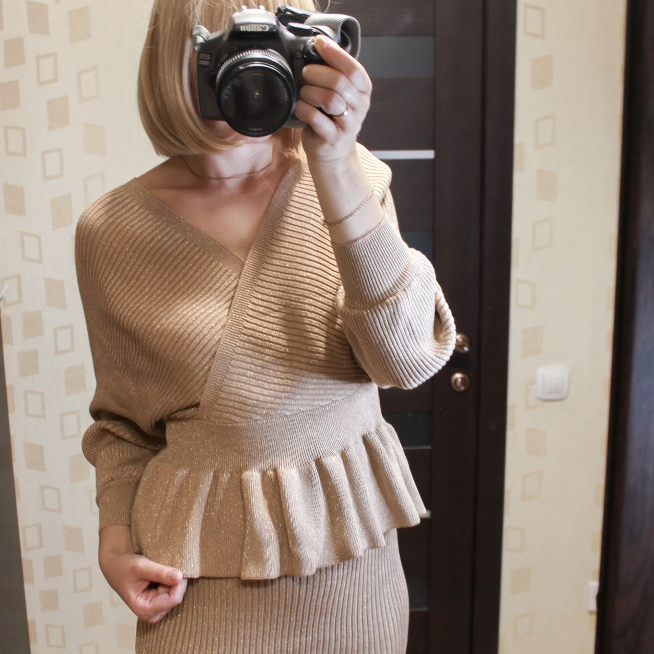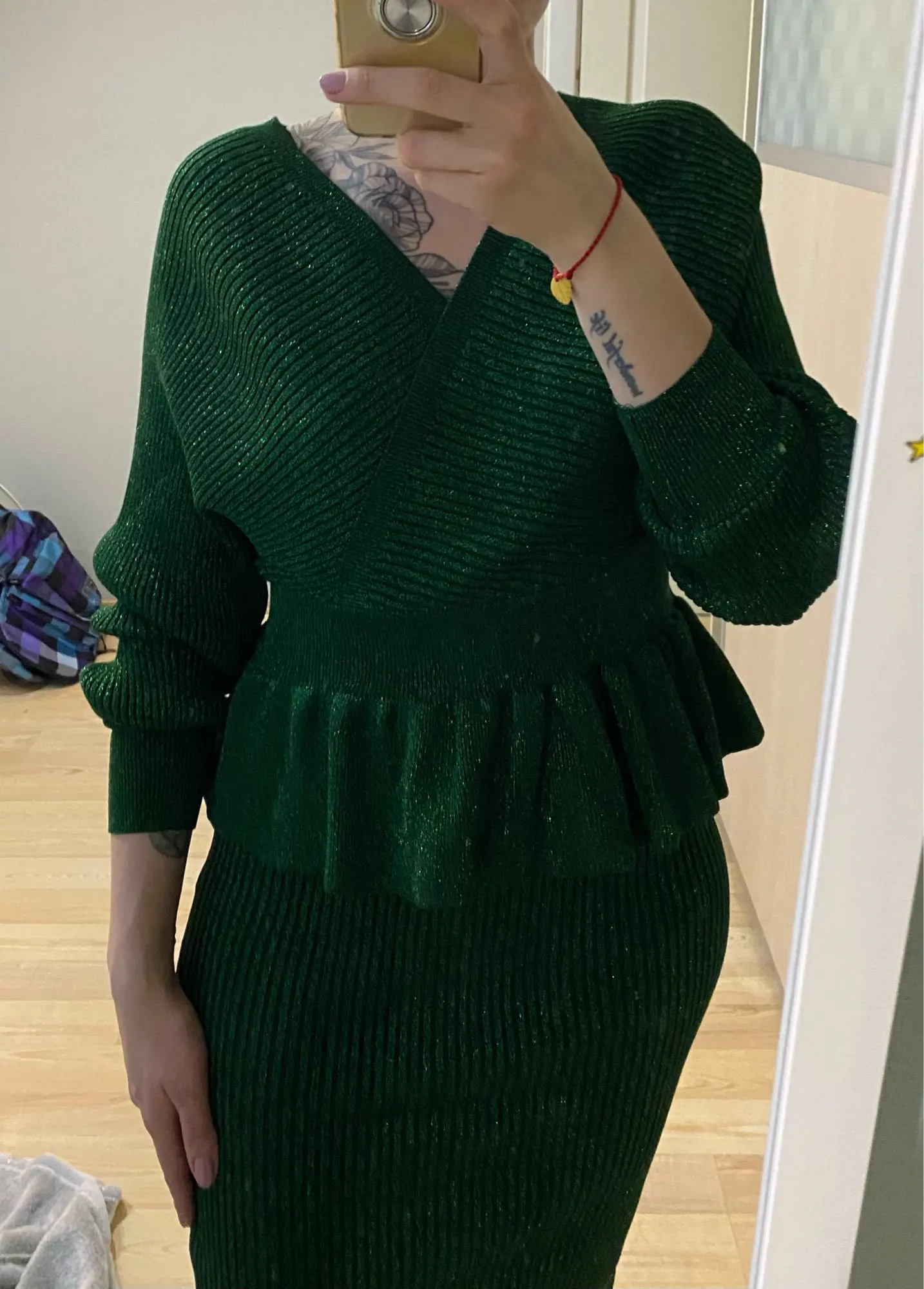 Девочки, этот костюм идеально подойдет для новогоднего корпоратива или другого особого случая♥️ Заказываем заранее, чтобы к празднику быть во всей красе. ✓доставка 2 недели, трек отслеживался ✓ по распаковке не было посторонних запахов ✓ единый размер ✓ 7 шикарных оттенков На параметры 88 65 93 сел идеально. Ткань хорошо тянется, ещё есть запас на пару размеров Трикотаж с добавлением люрекса придает костюму нарядность. В джемпере открытая спинка. Можно носить верх как с открытыми плечами, так и обычно. Ткань плотная, не просвечивает, не колется. Цвет у меня хаки. Выглядит очень красиво. Баска придает женственности и подчеркивает фигуру. Костюм просто бомба, однозначно рекомендую и цена для костюма замечательная.