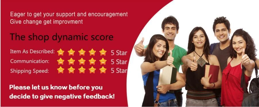 3. Негативные или нейтральные отзывы не помогут решить проблему. Если у Вас возникли какие-либо проблемы при получении посылки, пожалуйста, сначала свяжитесь с нами, а не оставьте негативные отзывы, спасибо. Мы должны предоставить вам удовлетворительное решение.