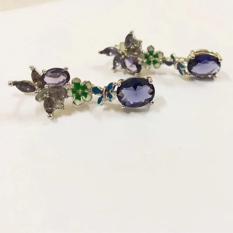 Женские серьги-гвоздики Milangirl, с эпоксидной смолой, с фиолетовым цветком и бабочкой из циркония, Длинные корейские серьги