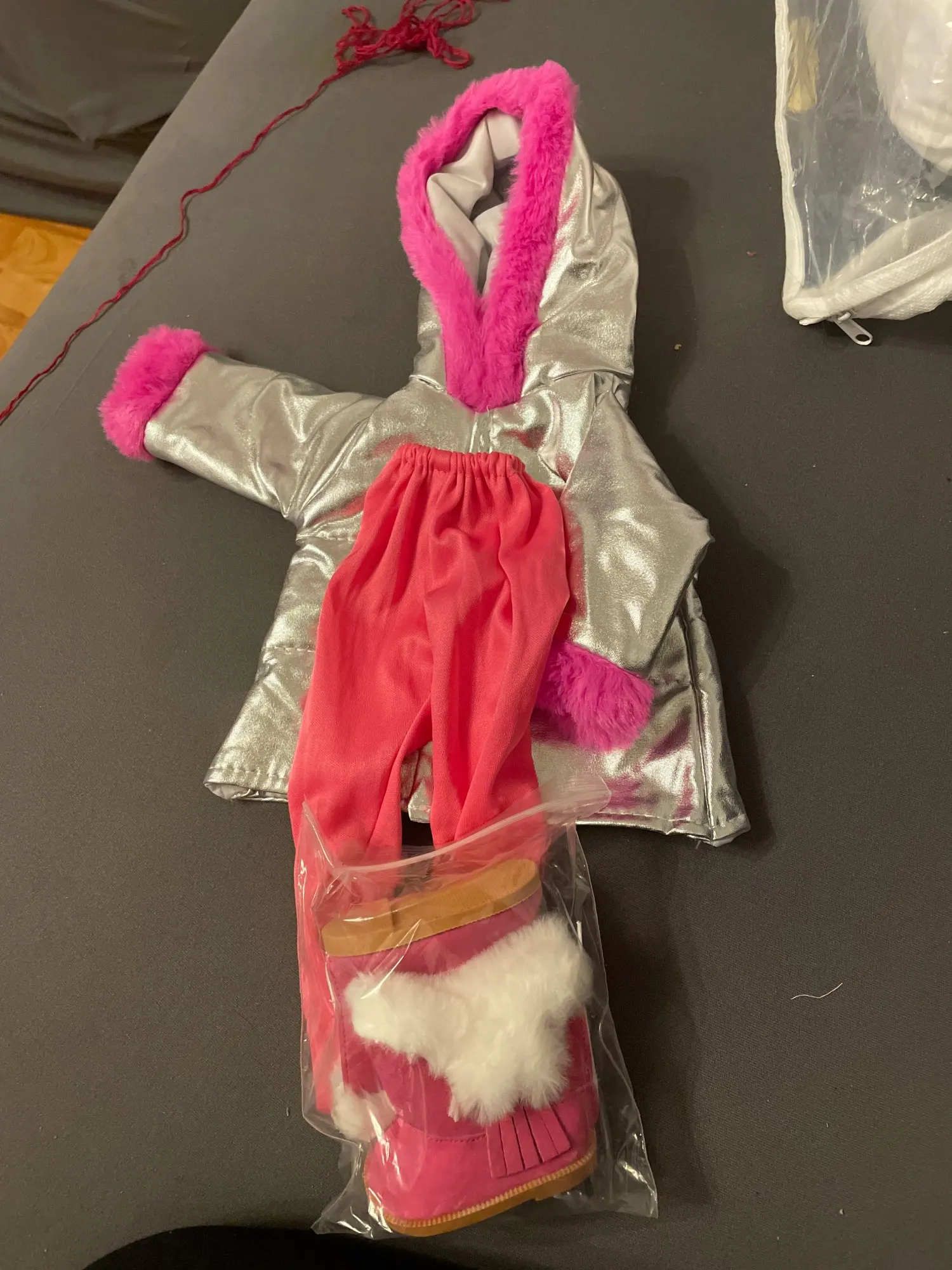 Красивая Одежда для кукол-кажется, хорошего качества-однако, меньше, чем аналогичная одежда того же размера. Так как это предназначено в качестве подарка для куклы 18 дюйма, он может быть немного мал, но не уверен, мы увидим