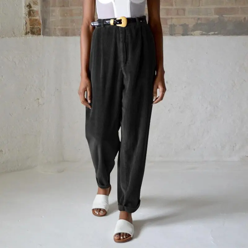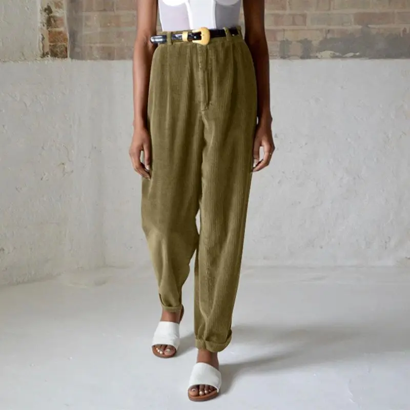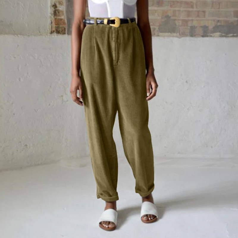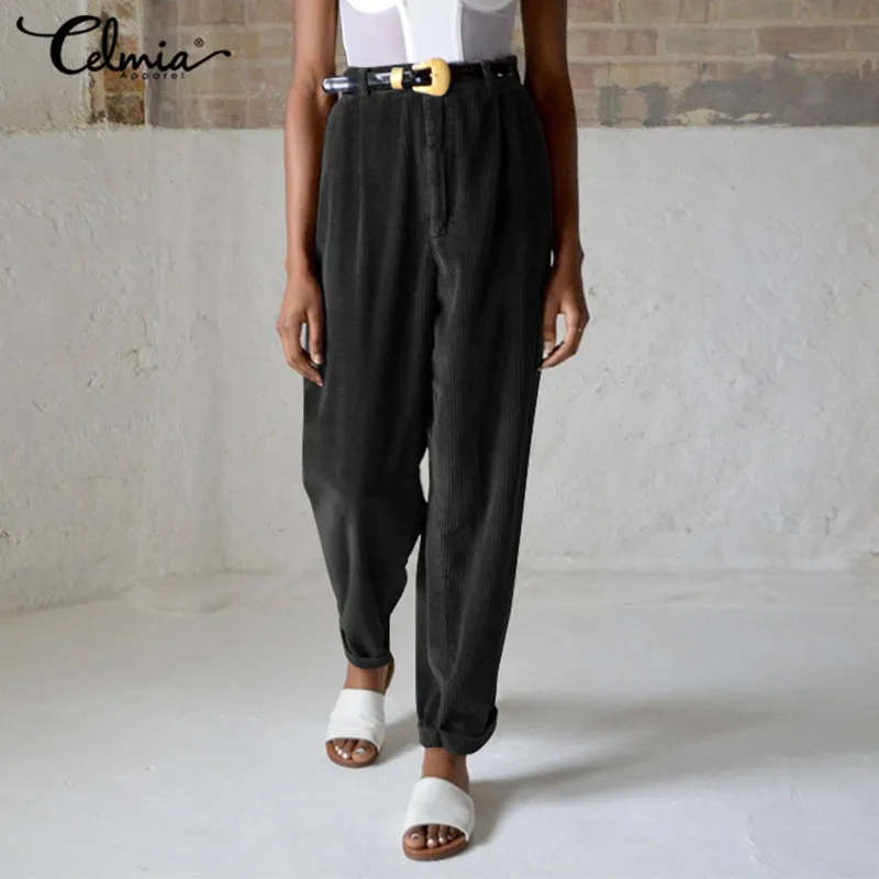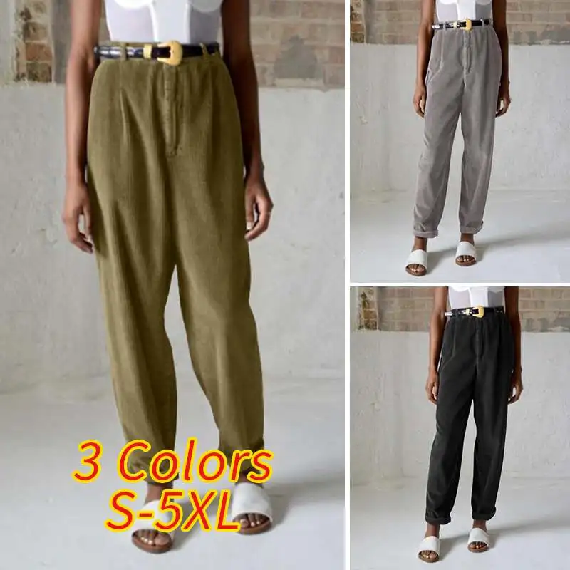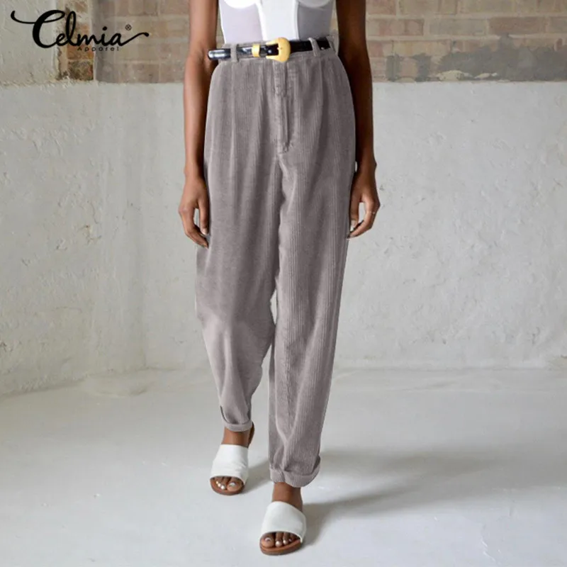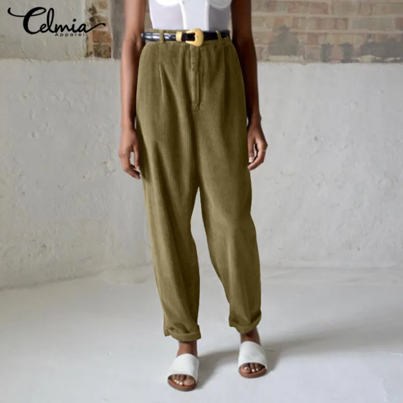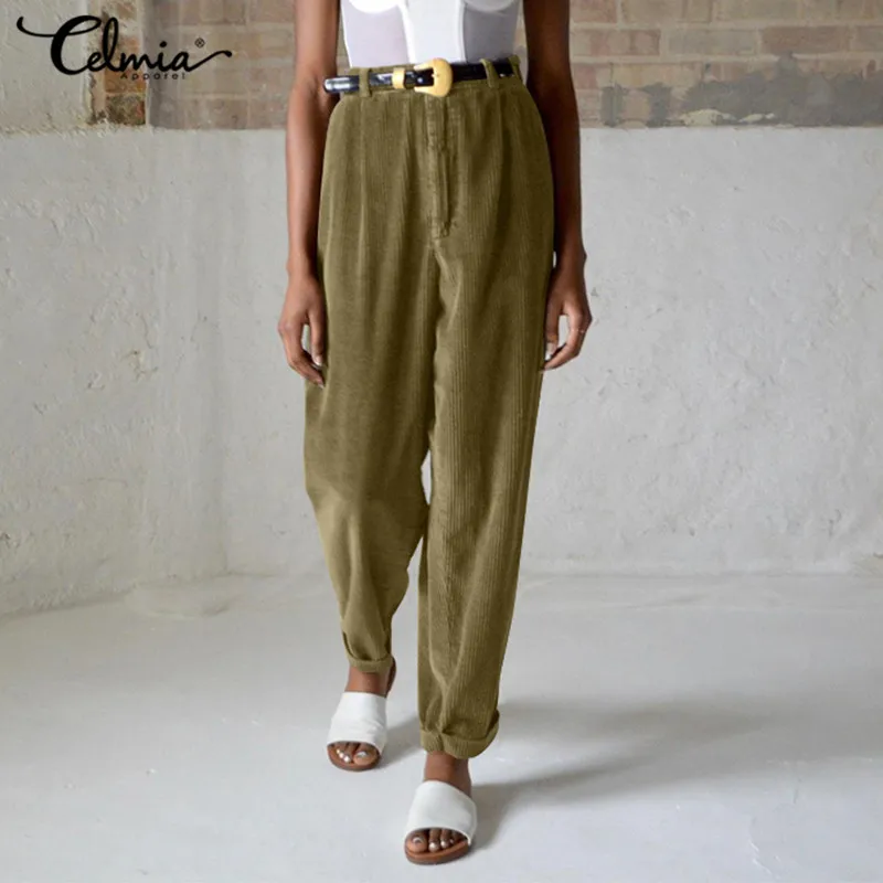 Модные женские вельветовые брюки, осень 2021, длинные винтажные повседневные однотонные брюки-шаровары Палаццо селмиа с высокой талией, брюки
