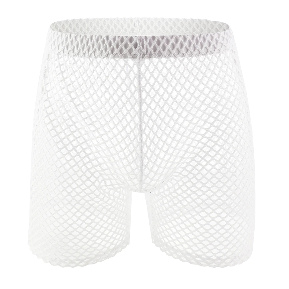 Мужские боксеры, Сетчатое нижнее белье с вырезами, дышащие, шорты с сеткой Длинные боксеры, мужские трусы-боксеры, нижнее Белье для сна