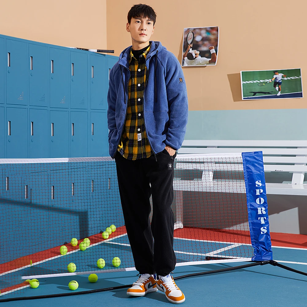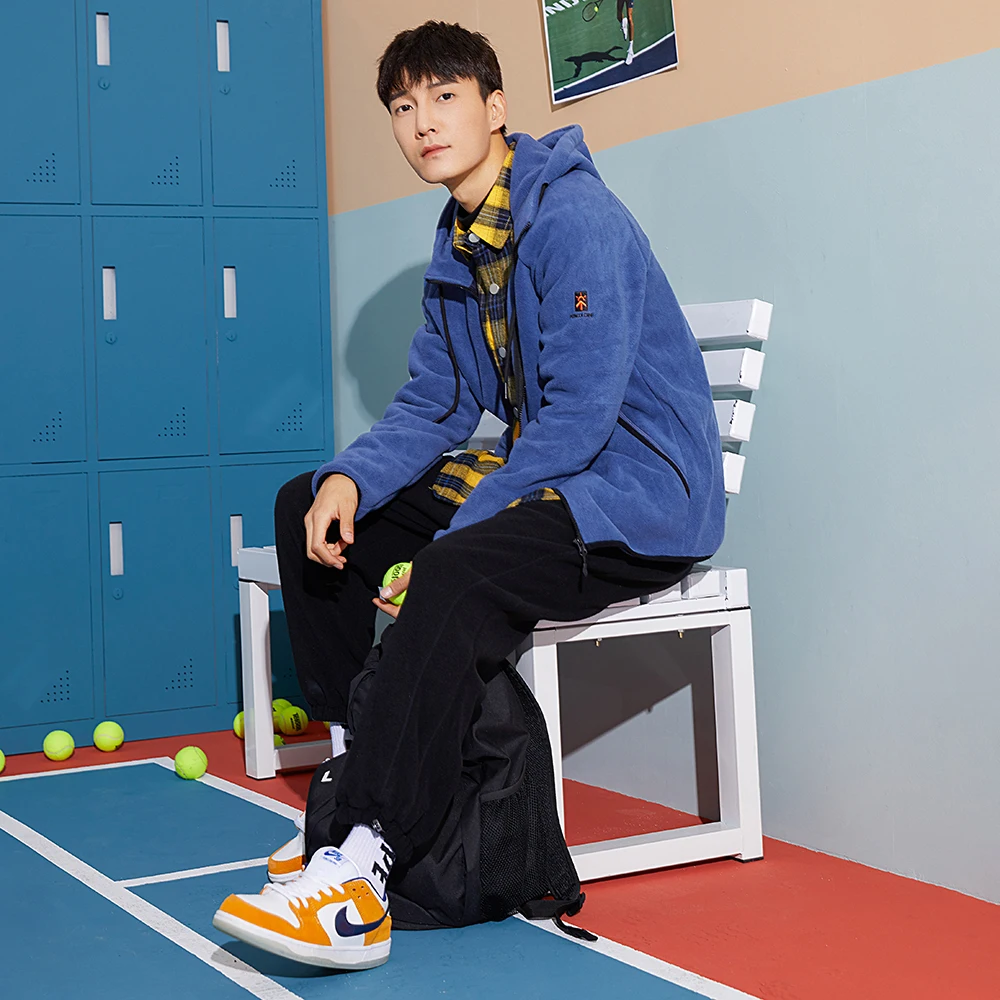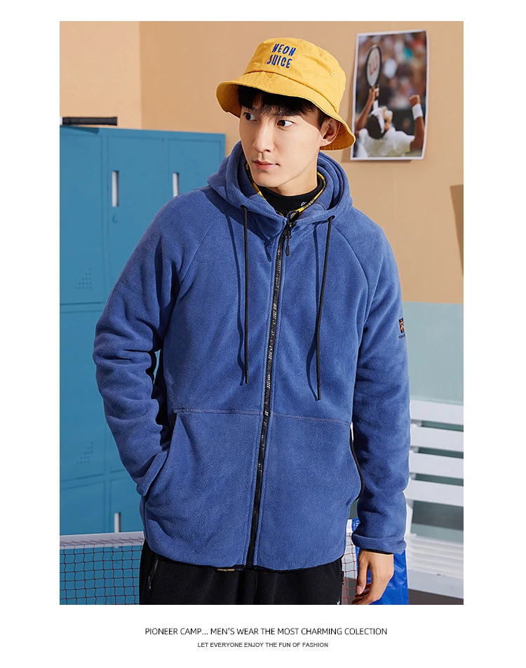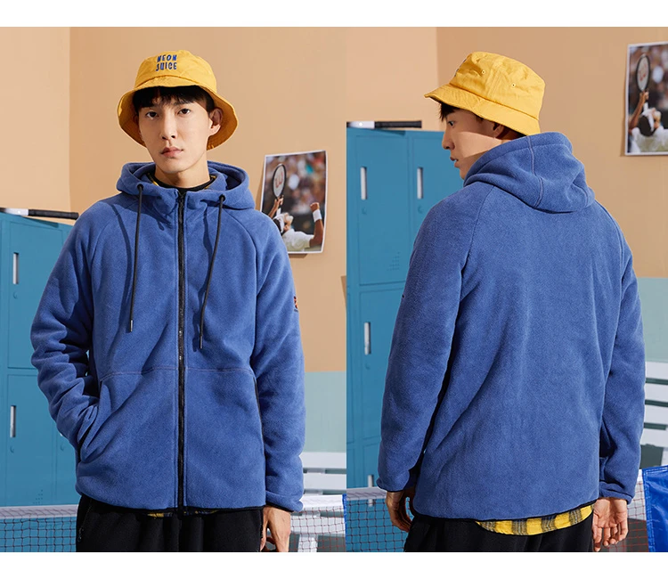 Куртка мужская флисовая на молнии, синего и зеленого цвета, с капюшоном, для зимы, XLW023016, 2020