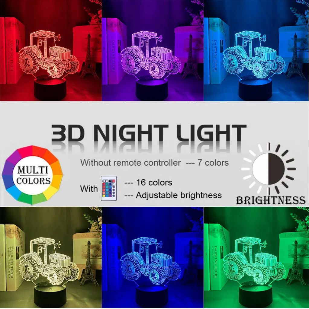 Новый 3D Трактор Автомобиль Иллюзия светодиодный Ночной светильник 7 цветов Изменение Smart Touch настольная лампа Декор магазин подарков бар Спальня светильник s