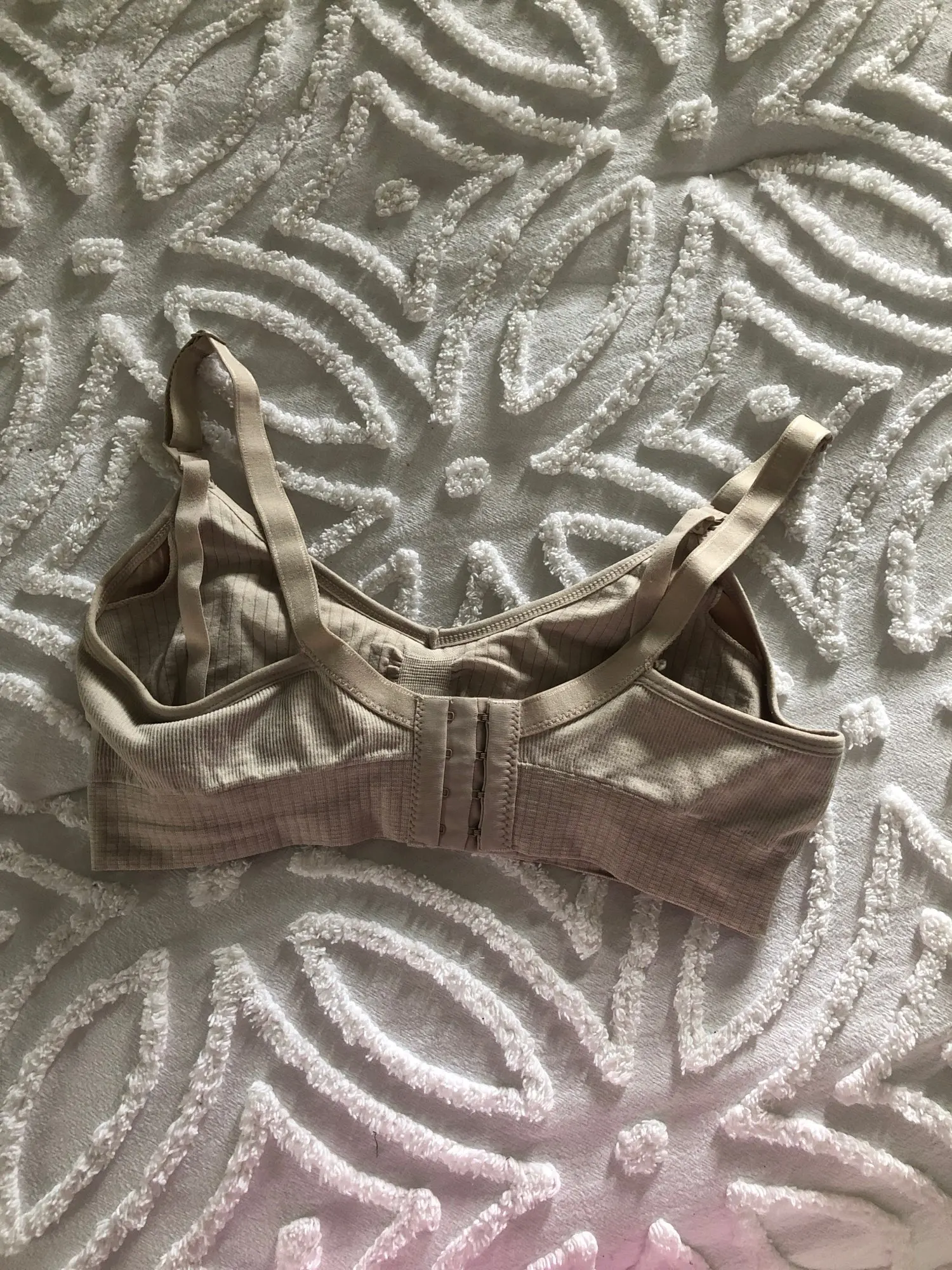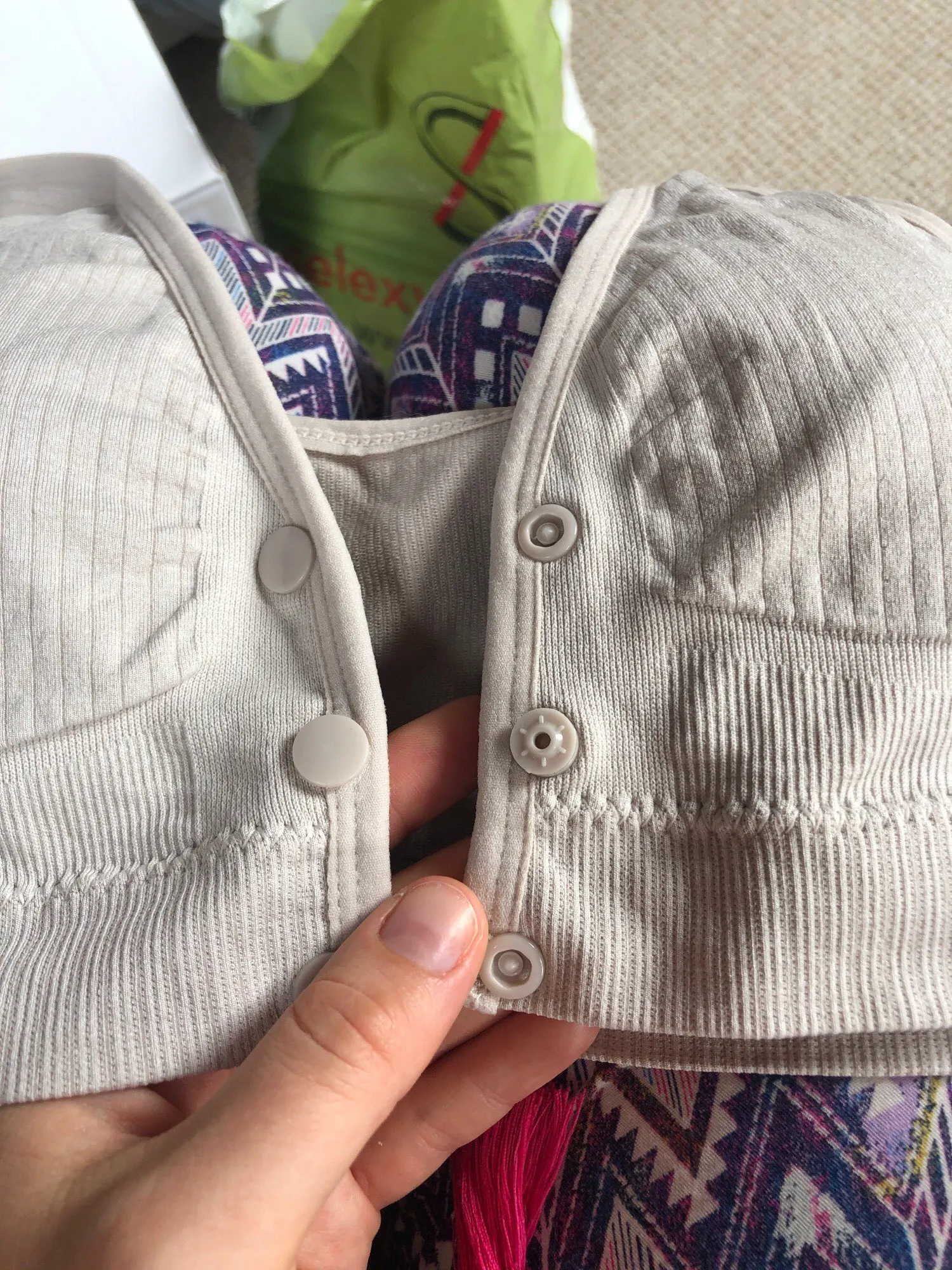 Очень хорошее качество, быстрая доставка, они удобны и имеют 3 контакта, что делает его регулируемым для разных размеров чашки. Может быть, попросить еще один размер, это не плохая идея, и это даже удобнее. Я не беременна, я 34B, и я купила размер M, и я использую его, просто закрепив 1 кнопку, будучи беременной.