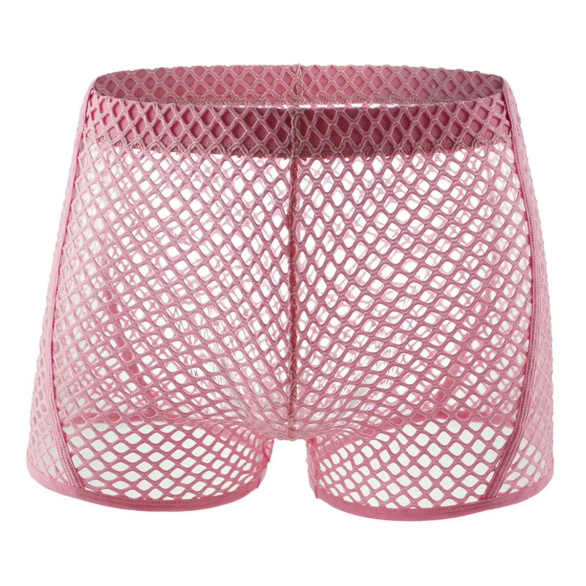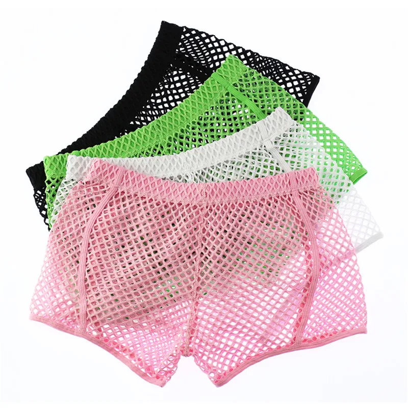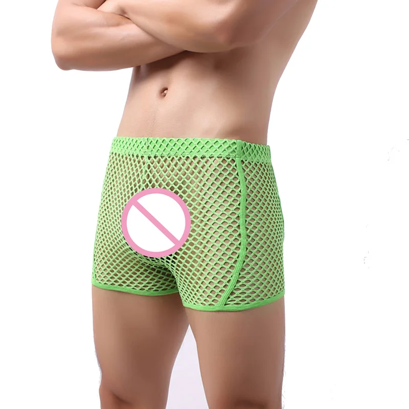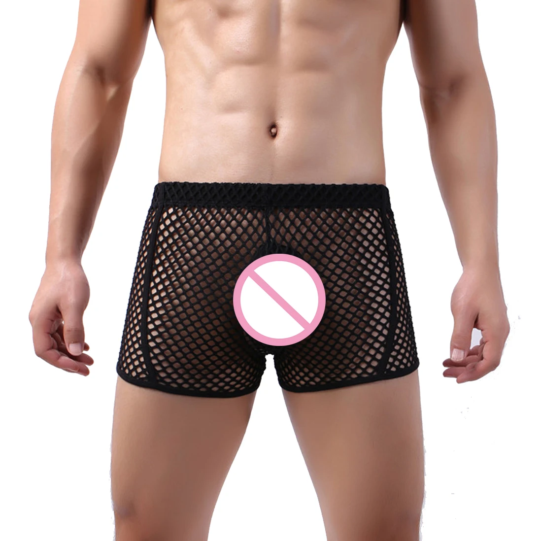 Сексуальное мужское нижнее белье в сеточку, прозрачные трусы-боксеры дышащие, мужские прозрачные трусы, пляжная одежда, Ночное Белье для сна