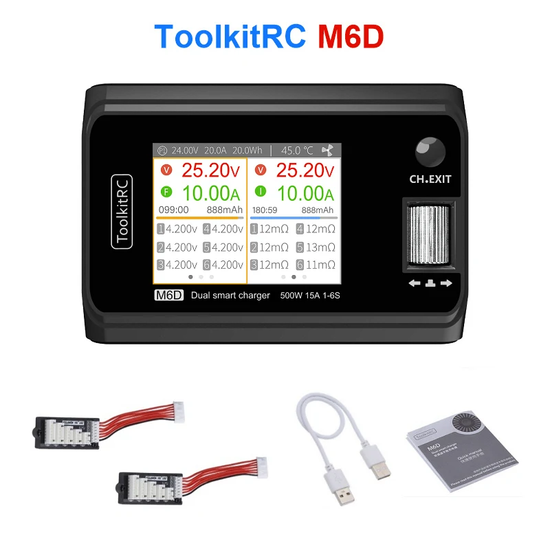 ToolkitRC M6D 500w 15A DC Двухканальное умное зарядное устройство с адаптером для 1-6S Lipo LiHV Lion NiMh Pb Cell