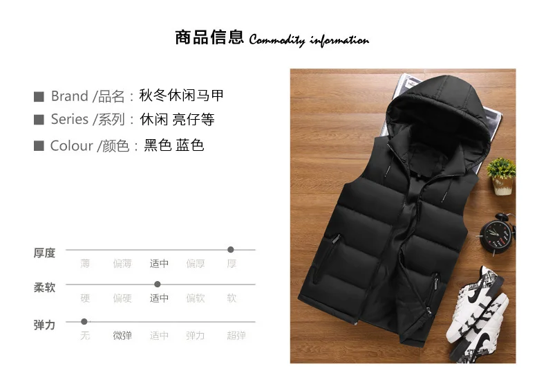 Жилет мужской пуховой без рукавов, теплая Толстая куртка с капюшоно...