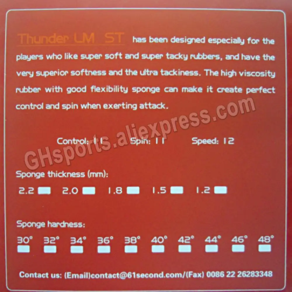 LM ST был разработан специально для игроков, которые любят супер мягкий и супер липкий каучук, и имеют очень высокую мягкость и ультра липкость. Высокая вязкость резины с хорошей гибкостью губки может сделать его создать идеальный контроль и вращаться при атаке. Этот товар предназначен только для одной резины с губкой.
