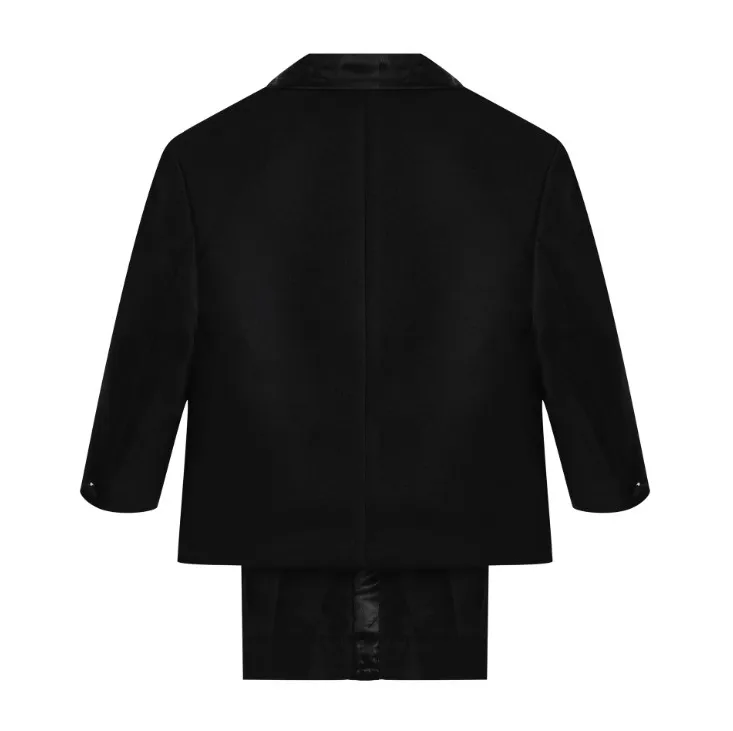 Комплект костюма включаетБрюки, пальто, рубашка, жилет и галстук-бабочка.